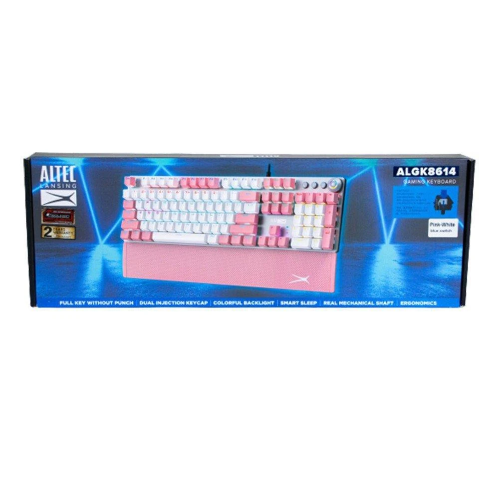 Altec Lansing ALGK8614 Gaming Keyboard Mechanical, Full Size, Pink/White, Blue Switch is designed for buyers who want dependable performance with a clean upgrade path.