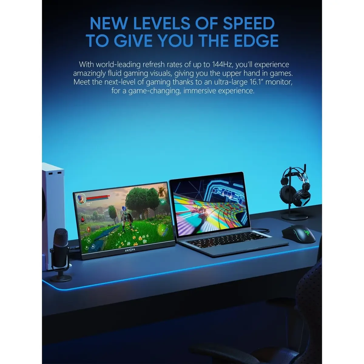 – 16.1″ 144Hz Display: Arzopa Z1FC 16.1″ portable monitor has 144Hz ultra-high refresh rate for higher motion clarity and smoother gaming visuals. The 144Hz high refresh rate brings lower input latency and higher videos, work and game screen quality(no adaptive sync or freesync)