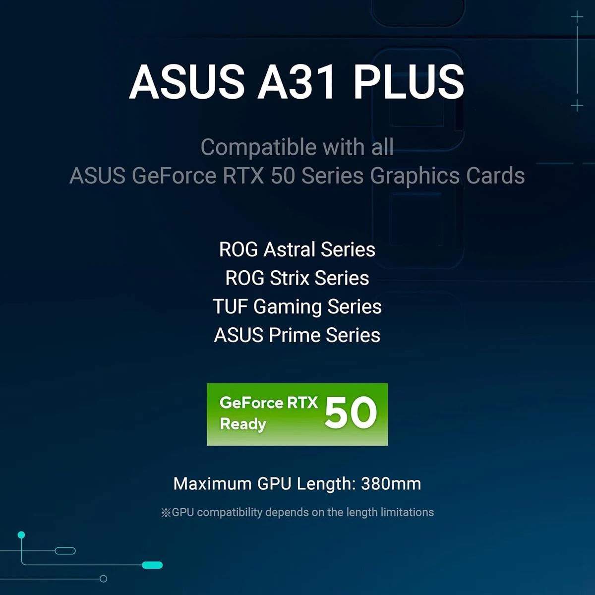 Broad Compatibility: The A31 PLUS supports up to 360mm radiators combined with fans of up to 80mm thick, plus graphics cards up to 380mm in length and CPU air coolers with heights of up to 165mm.
