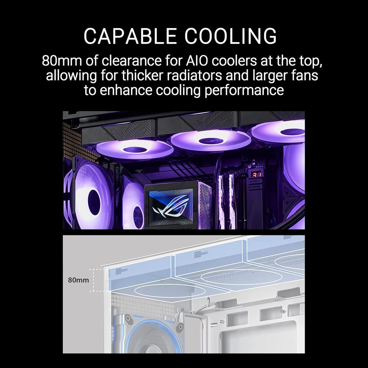 – Broad Compatibility: The A31 PLUS supports up to 360mm radiators combined with fans of up to 80mm thick, plus graphics cards up to 380mm in length and CPU air coolers with heights of up to 165mm.