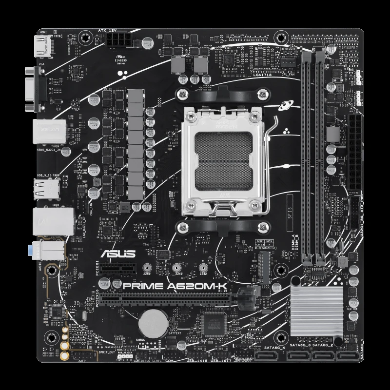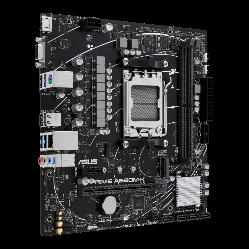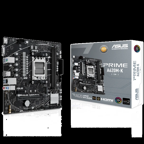 – AMD A620 micro-ATX motherboard, DDR5, PCIe 4.0 Graphics card and PCIe 4.0 M.2 support, DisplayPort, HDMI™, VGA, USB 3.2 Gen 1 Type-A, SATA 6 Gbps, Two-Way AI Noise Cancelation, Aura Sync
