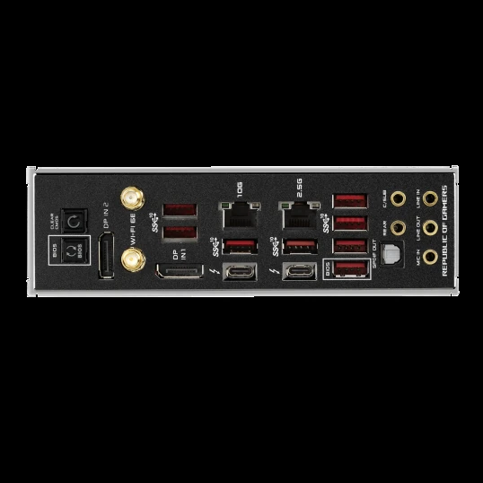 – Comprehensive thermal design: Enlarged VRM heatsinks plus integrated aluminum I/O cover, high-conductivity thermal pad, five M.2 heatsinks with embedded backplates and ROG Water-Cooling Zone.