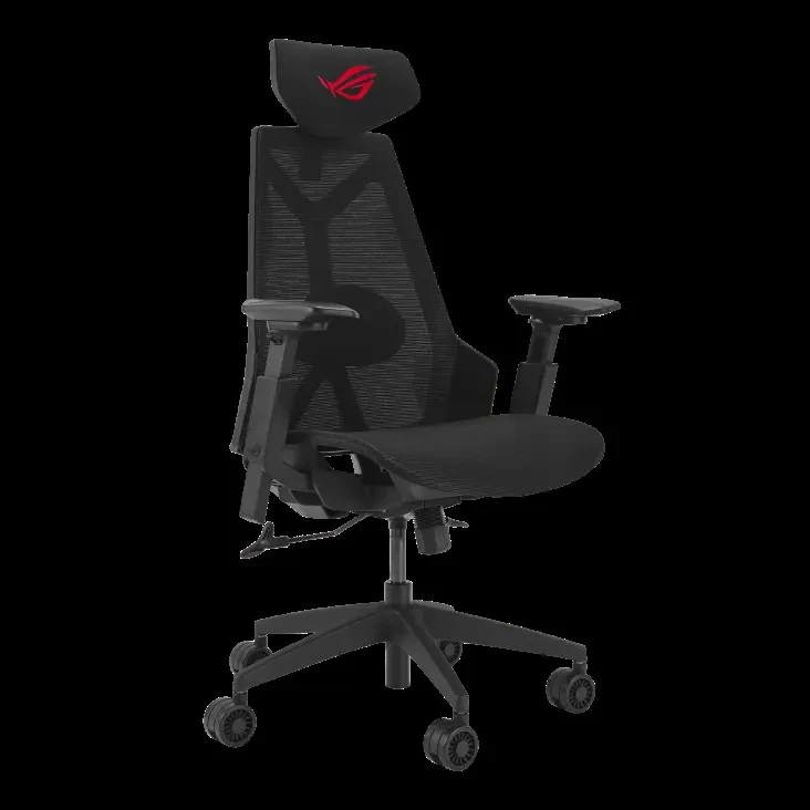 – ROG Destrier Core ergo gaming chair with futuristic cyborg aesthetic, versatile seat adjustments for the perfect posture, mobile gaming arm support mode, and crafted from durable polyamide nylon and breathable mesh for comfortable marathon gaming sessions