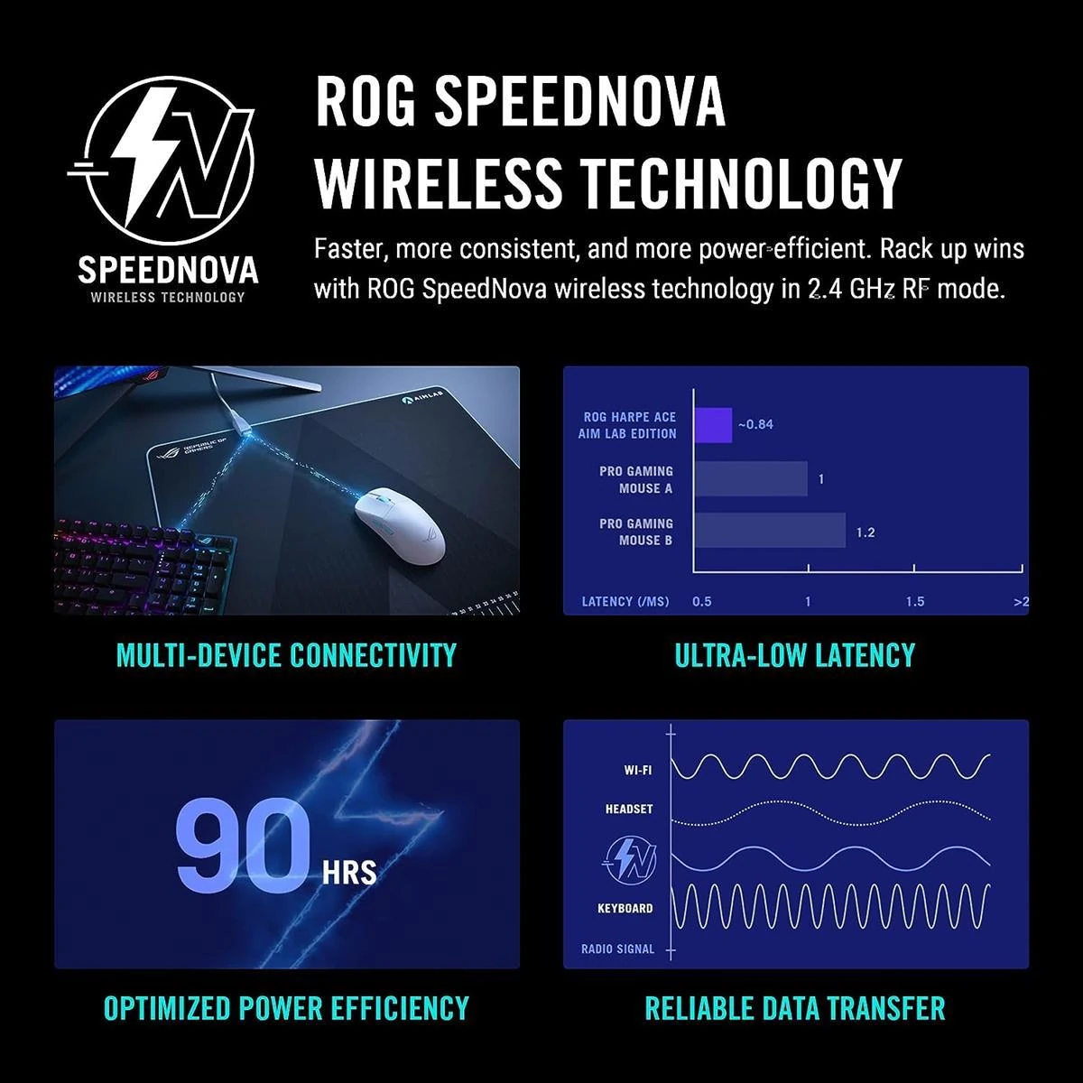 – The ROG Harpe Ace is engineered through collaboration with top esports professionals and world record aimers at Aim Lab. Extensive insight and understanding on the needs of esports players led our engineers to design a delicate balance of shape and weight distribution.