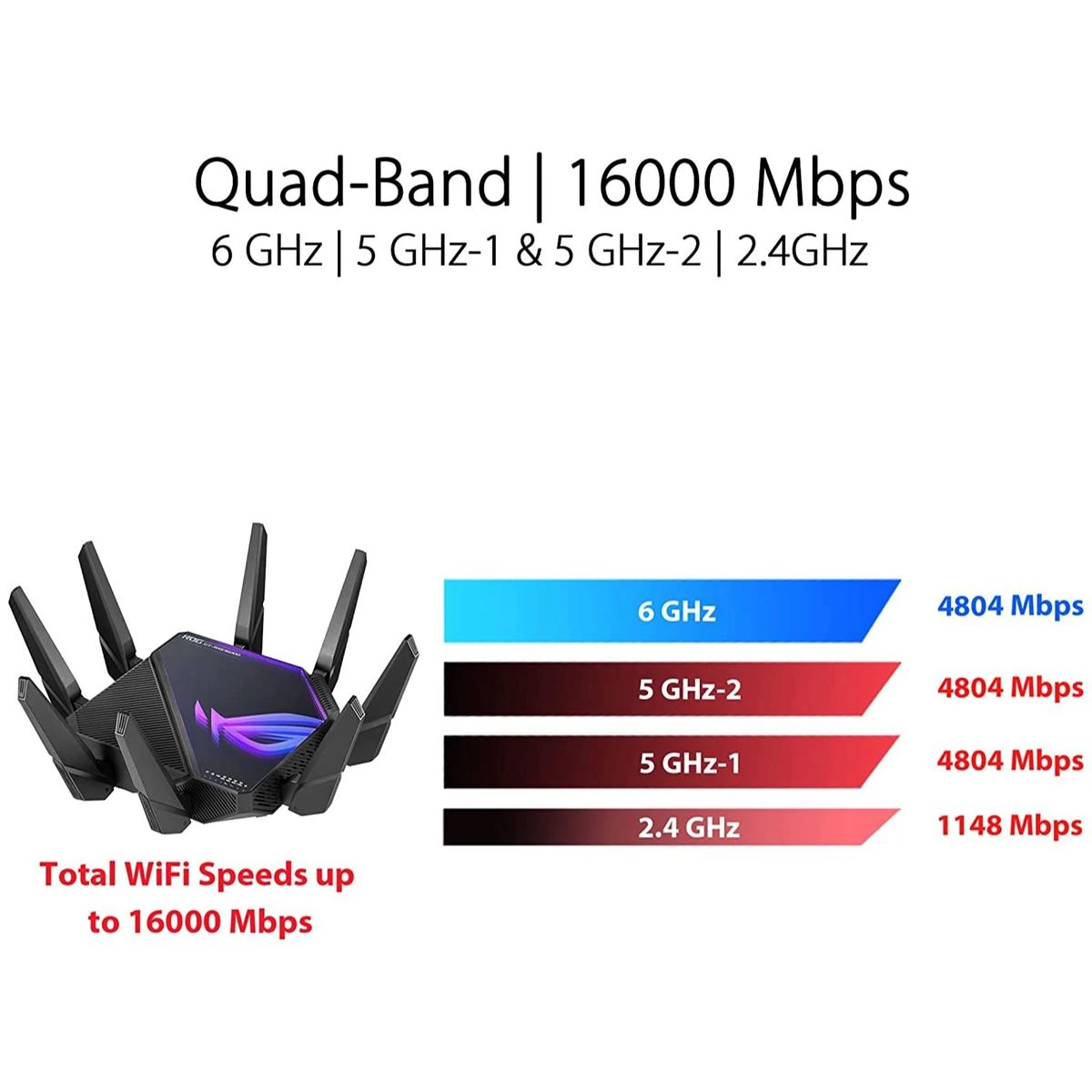 – Quad-band WiFi 6E gaming router – Ultrafast WiFi 6E (802.11ax) quad-band WiFi router boosts speeds up to 16000 Mbps