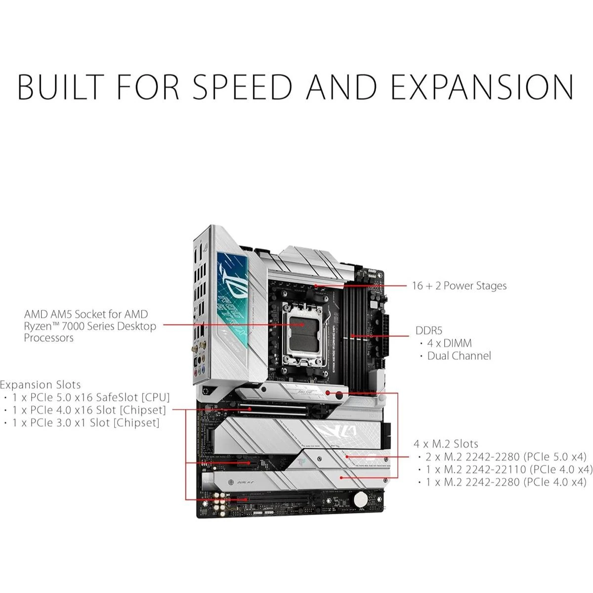 – An x16 slot and two on-board M.2 slots are PCIe Gen 5-ready