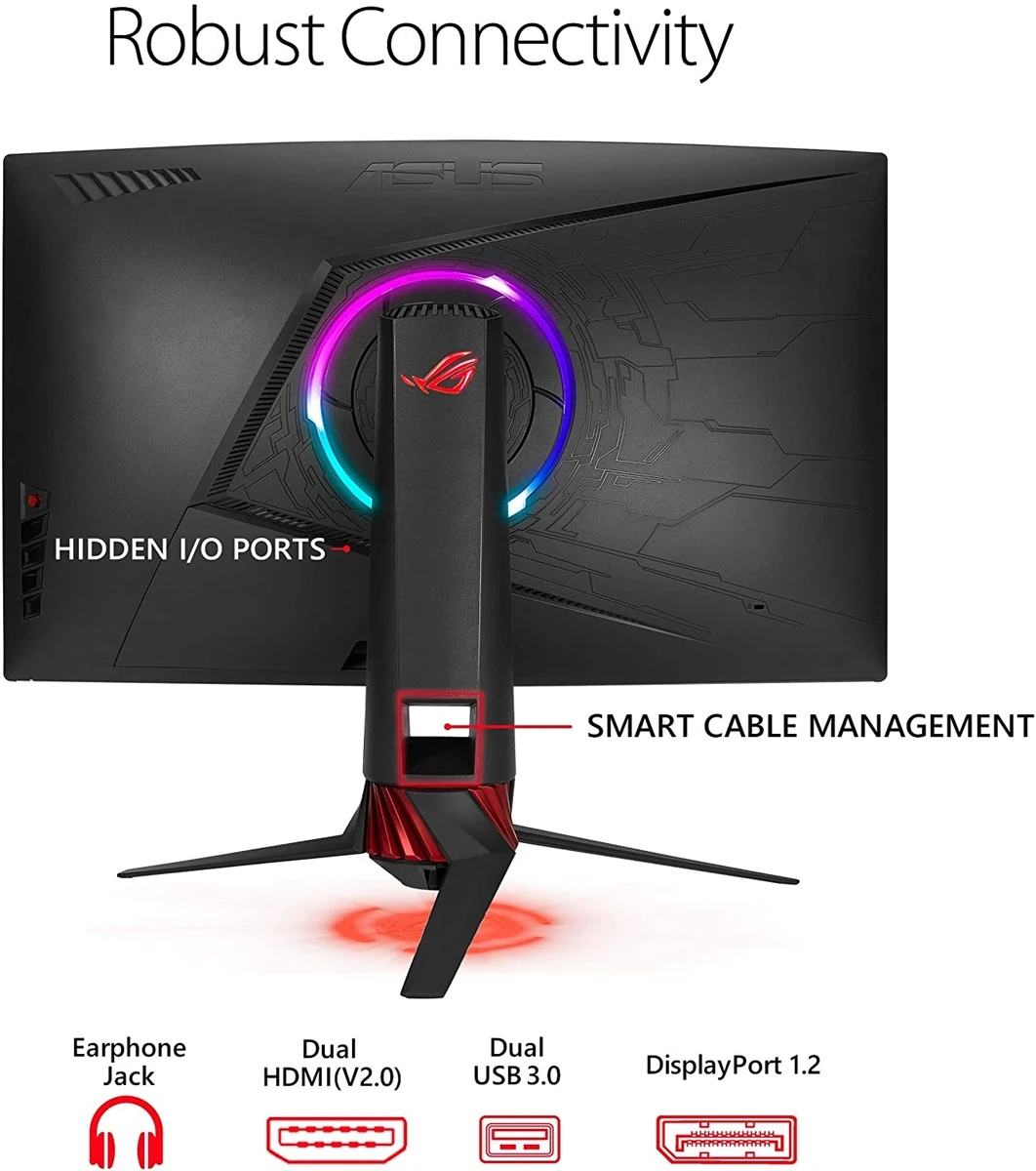 – The 32-inch screen of the ROG Strix XG32VQR delivers stunning visuals from all angles, thanks to an 1800R curvature that ensures every point is equidistant to your eyes. This contributes to greater viewing comfort and lets you enjoy wide viewing angles with minimal distortion or color shift.