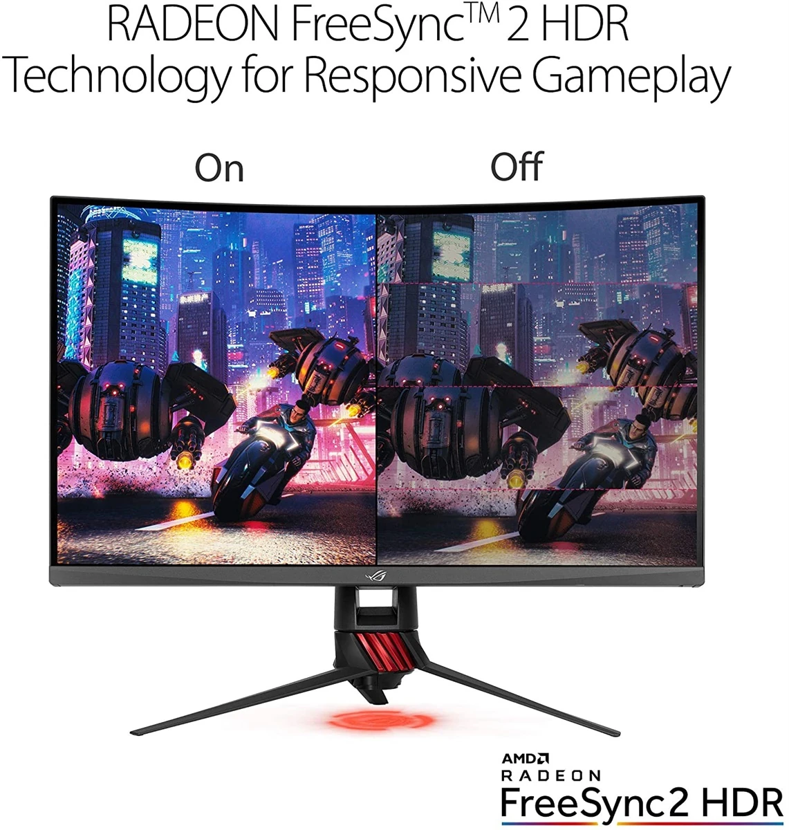 – ROG Strix XG32VQR features FreeSync 2 HDR technology that delivers buttery-smooth visuals with low latency and better brightness and contrast. Freesync 2 stipulates low-latency processing for both SDR and HDR content, eliminating the input lag typically associated with HDR content.