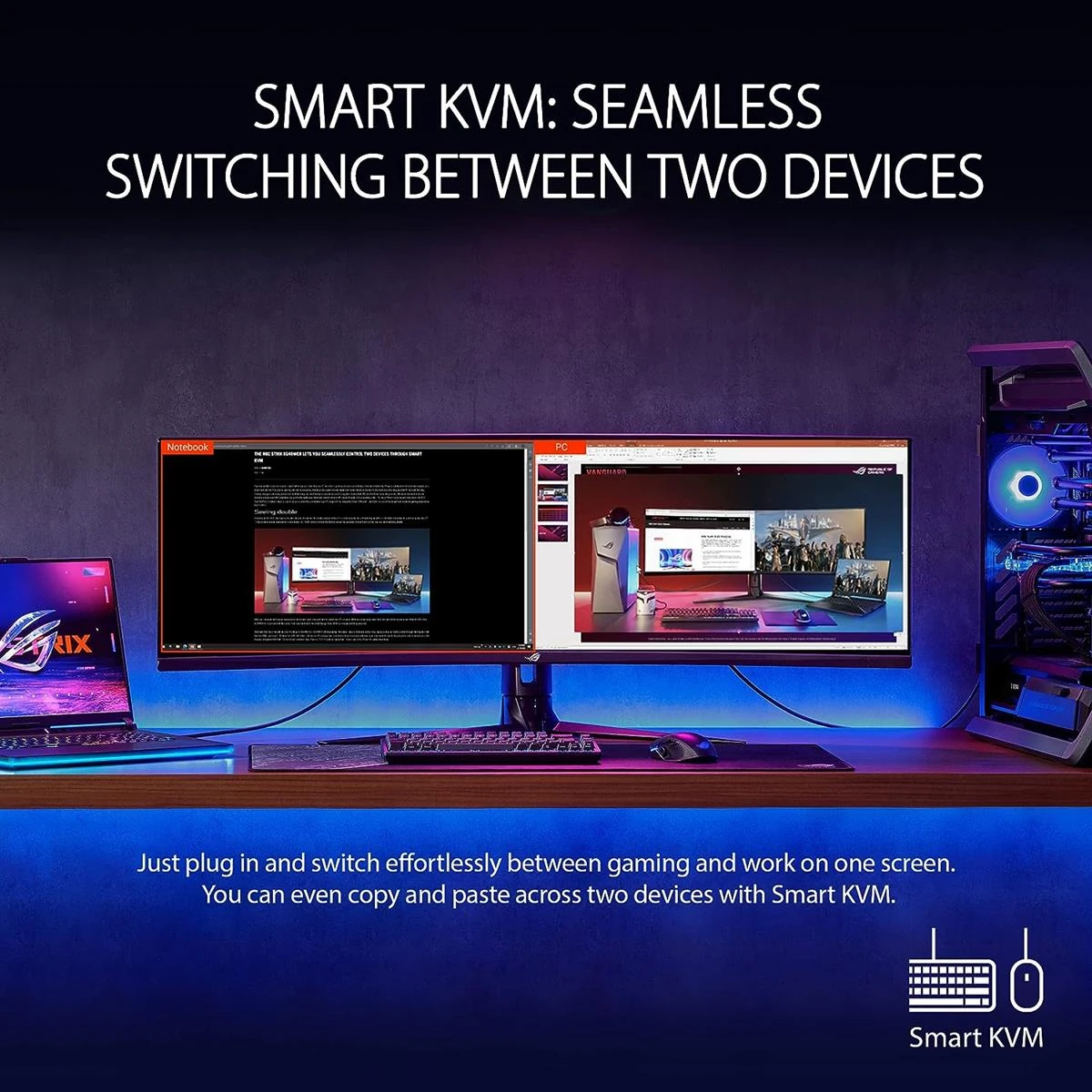 ROG Strix XG49WCR Super Ultra-wide Gaming Monitor — 49”, Double QHD 32:9 (5120 x 1440), Curved, 165Hz OC (above 144Hz), ELMB Sync, DisplayHDR 400, 90% DCI-P3, DisplayPort 1.4, USB Type-C, Smart KVM, DisplayWidget, RJ-45.