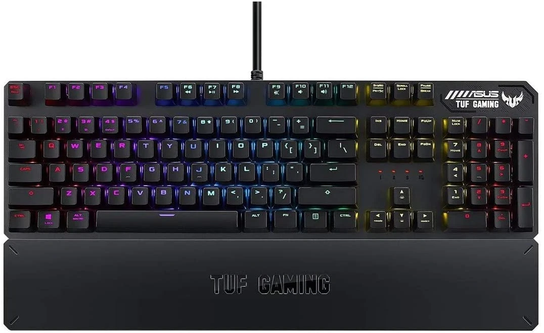 – ASUS TUF Gaming K3 is a mechanical RGB keyboard that features durable switches for responsive and reliable performance. Its customizable all-key RGB lighting offers unlimited personalization options, while the detachable magnetic wrist rest gives you extra support and comfort for gaming marathons. In addition, K3 offers convenient USB 2.0 passthrough, an aerospace-grade aluminum top cover, eight fully programmable keys with onboard memory and media keys — so you’ll be ready to play like a pro.