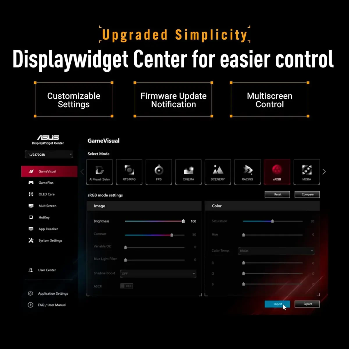 – DisplayWidget Center enables easy OSD access and monitor settings adjustments with a mouse