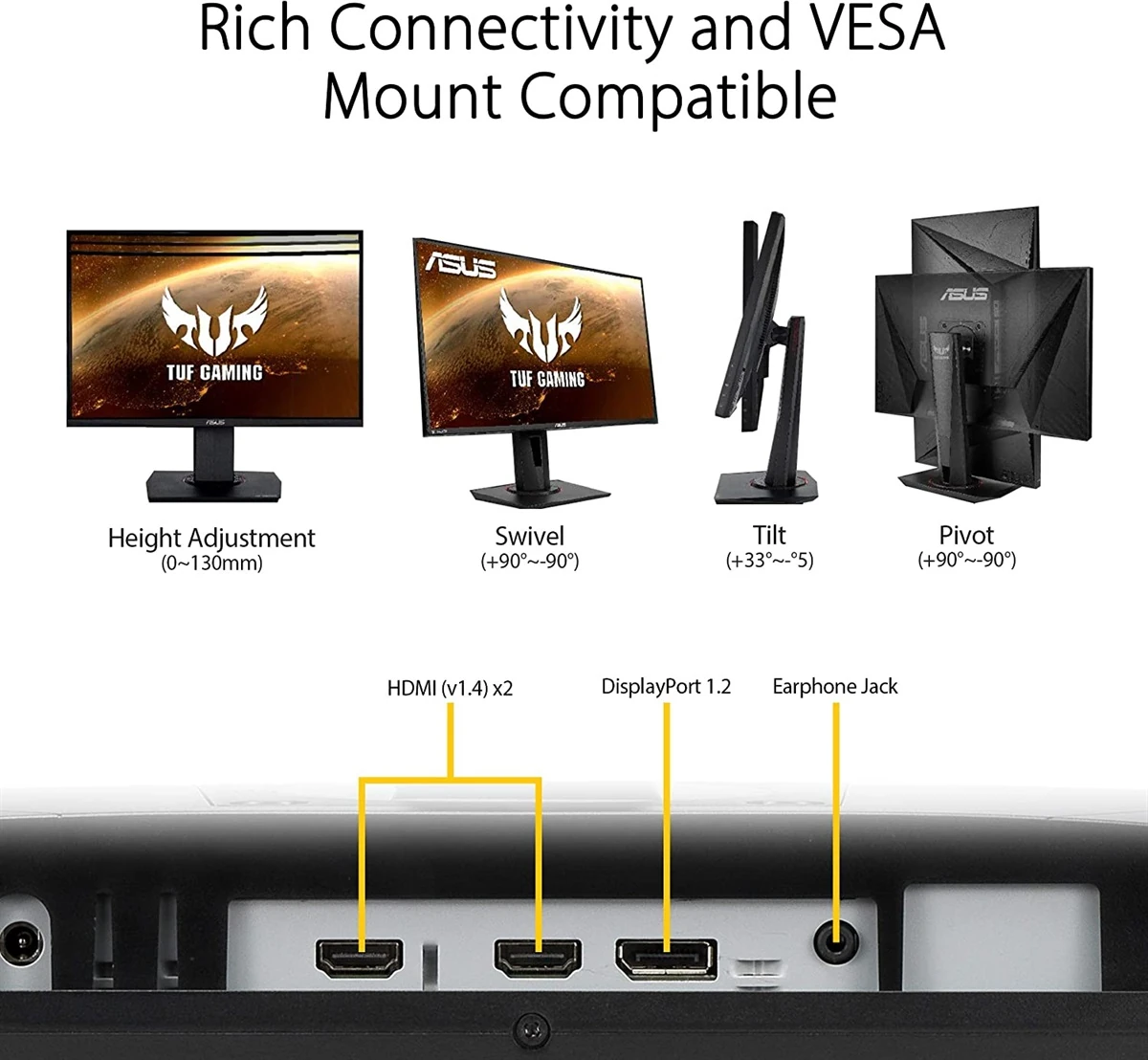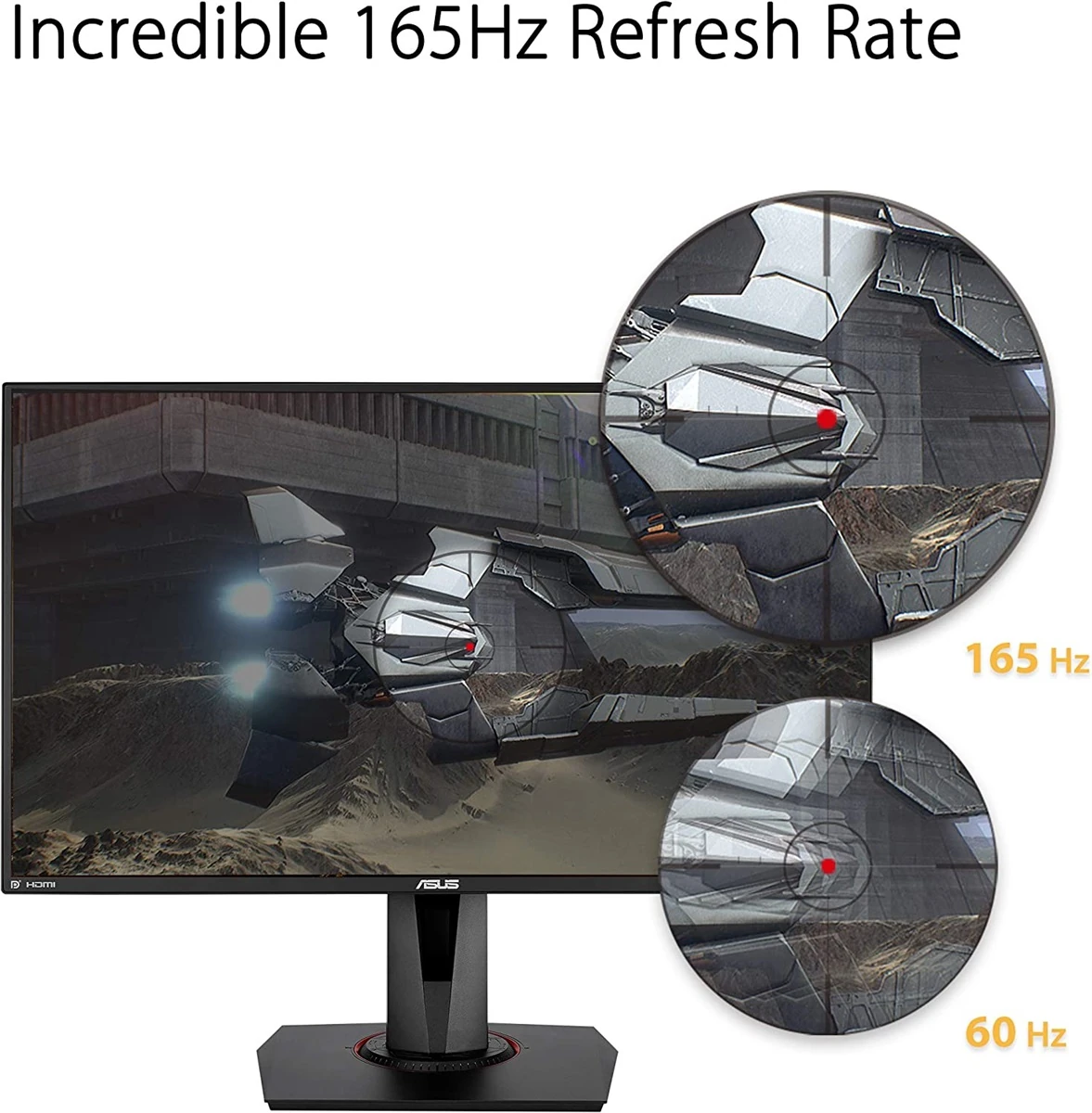– TUF Gaming VG279QR has an ultra-fast 165Hz refresh rate, ensuring that even fast-paced games played at the highest visual settings look buttery smooth and completely lag-free. Get the upper hand in first-person-shooters, racing, real-time strategy and sports titles.