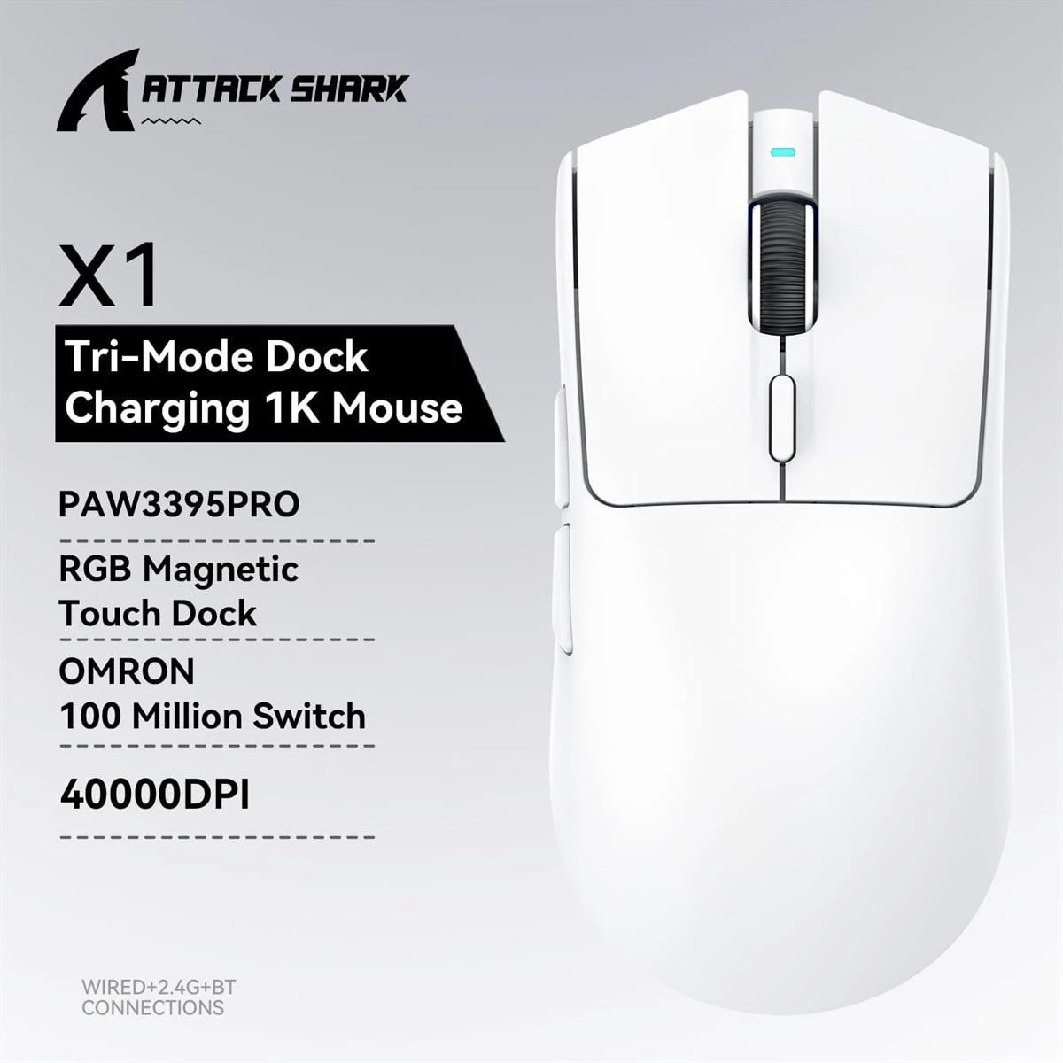 Attack Shark X1 Wireless Gaming Mouse with RGB Charging Dock, PAW3395 PRO Sensor Up to 40K DPI, 53g Ultra Light Tri-Mode Computer Mice, 1KHz Polling Rate 5 Programmable Buttons for WIN/MAC – White (with Grip Tape) is designed for buyers who want dependable performance with a clean upgrade path.