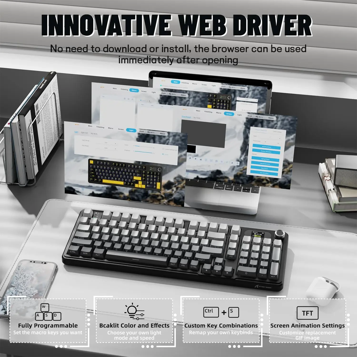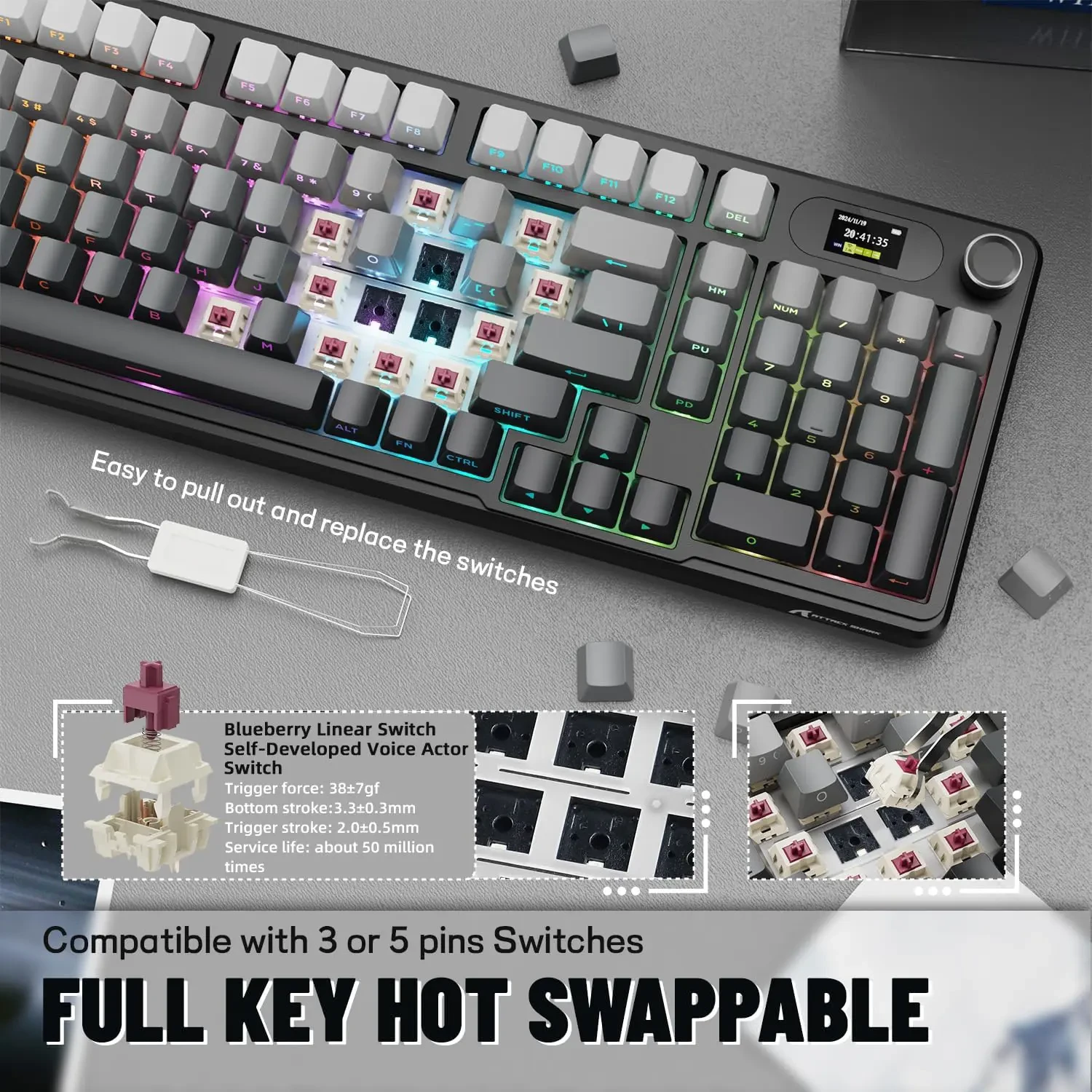 Attack Shark X98 Pro Wireless Mechanical Keyboard, Tri-Mode BT5.0/2.4G/USB-C Custom Keyboard with Smart Display & Knob, 102 Keys Hot Swappable, Web Driver RGB Gaming Keyboard for PC/Mac/PS4/Xbox (Gradient Black)