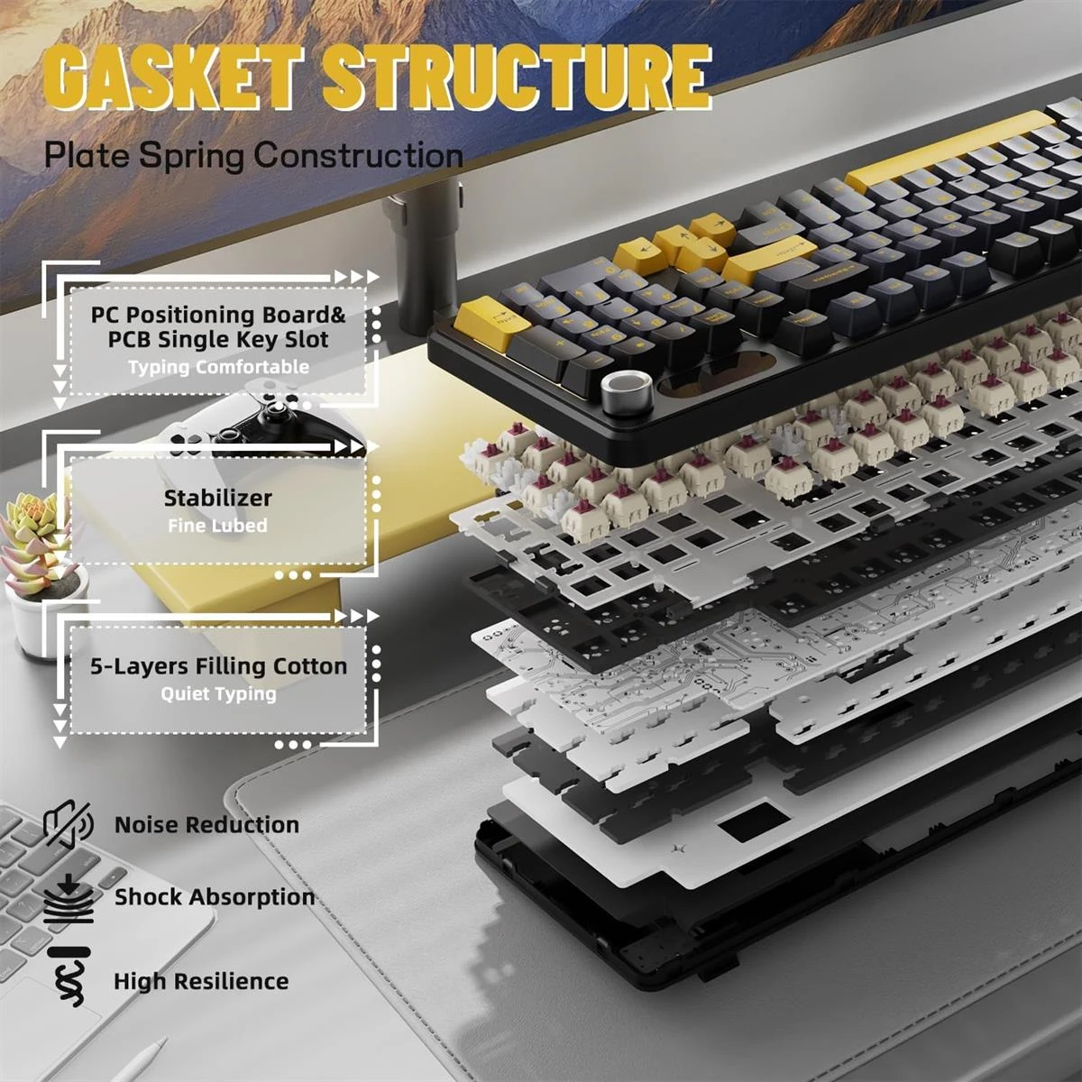 – The X98 Magic keyboard has a clear and bright 1.5-inch LED matrix screen and a portable and convenient knob. The small LED screen will display important information such as your time, date, and power. At the same time, when you press FN + knob at the same time, you will be able to use the knob to adjust your volume. The design of the knob perfectly integrates convenience into your life.