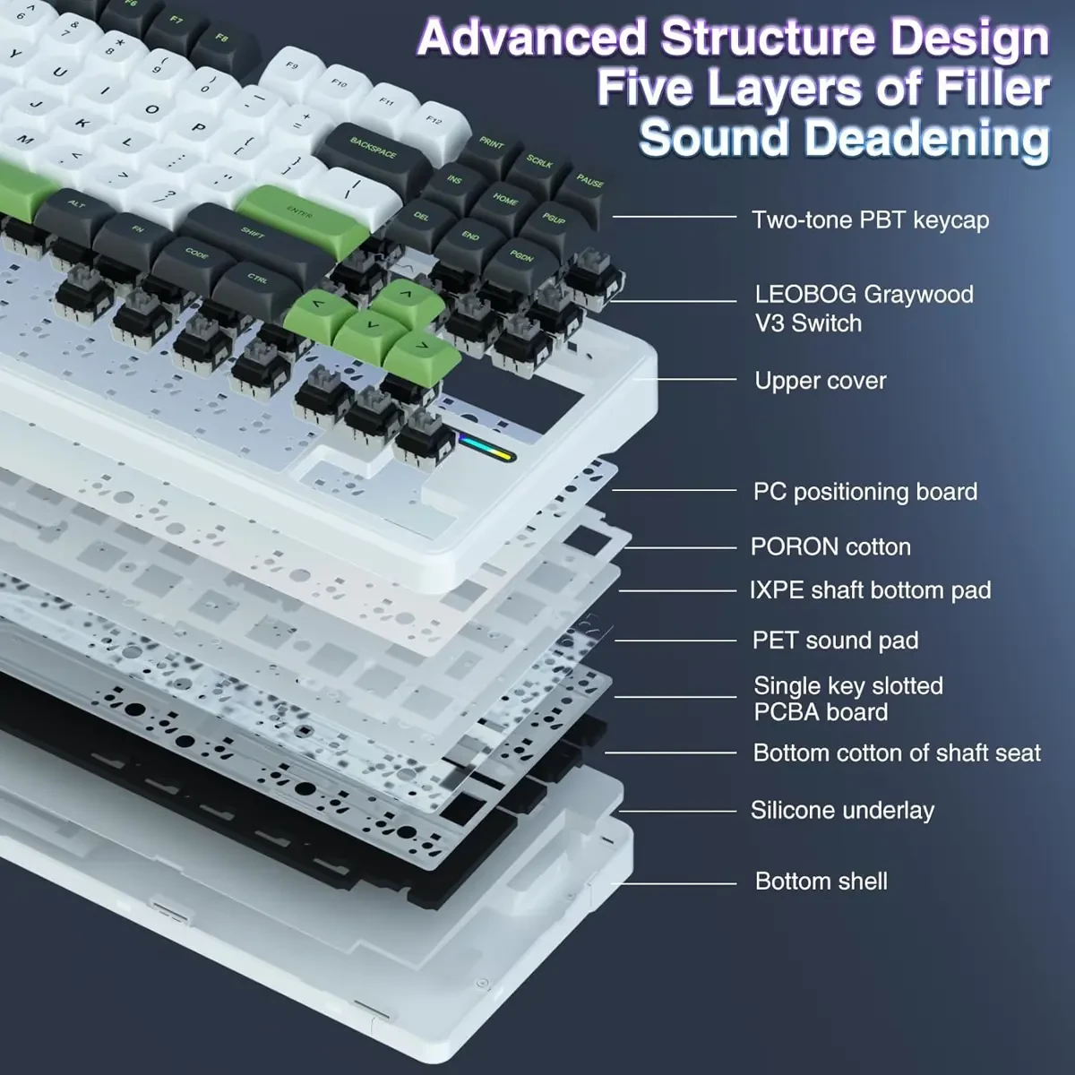 – The F87 features a gasket design, incorporating an extended silicone pad for a soft and delicate touch. This innovative structure ensures each keystroke is comfortable and satisfying, providing a unique elastic feel.