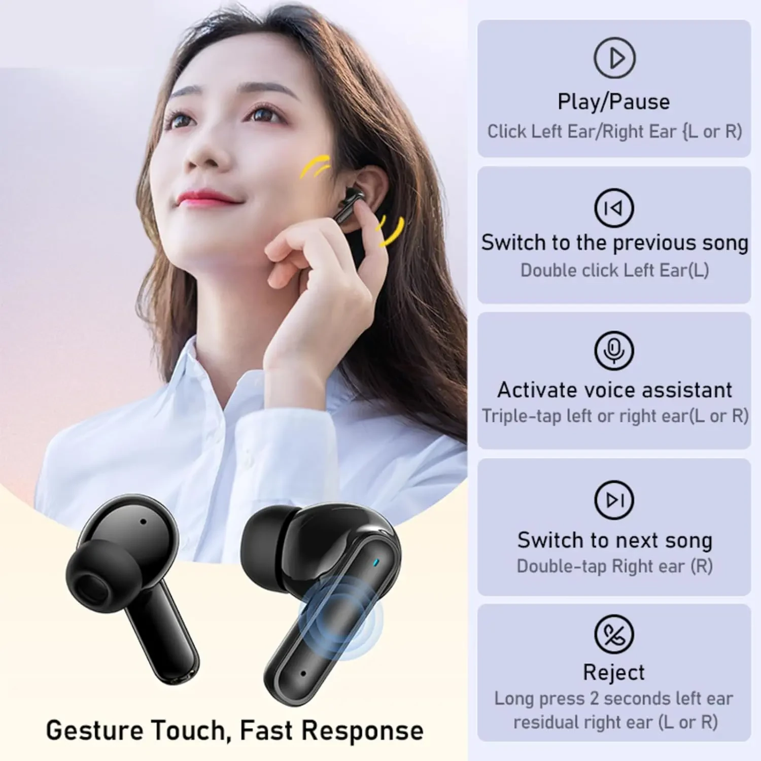 – The wireless earphones bluetooth use the bluetooth 5.4 chipset. There is a faster and more stable signal transmission and has successfully achieved low latency without interruption. With a range of up to 10 m, whether you are at home, in the office, or on the road, you don’t have to worry about disconnection of the bluetooth earbuds