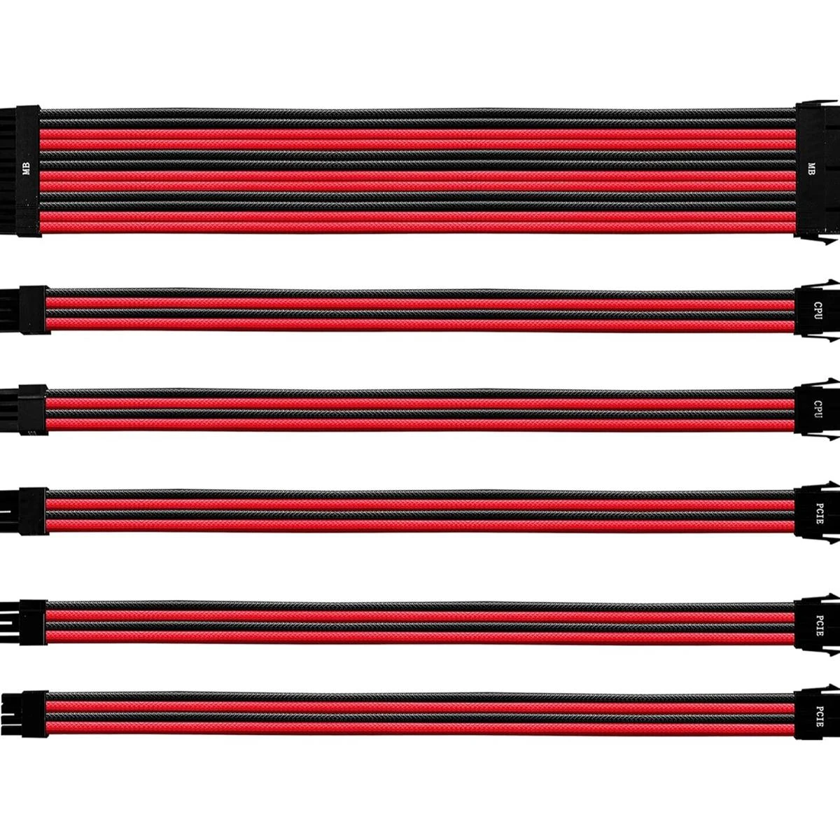 Includes 7 x 30 cm long cables which are compatible with any standard ATX power supply unit: 1 x ATX 24 Pin, 1 x CPU 8 (4 + 4) Pin, 1 x CPU 8 Pin, 2 x PCI-e 6+2 Pin, 2 x PCI-e 8 Pin / Cable Clips: 4 x 24 Pin, 12 x 8 Pin, 6x 6 Pin