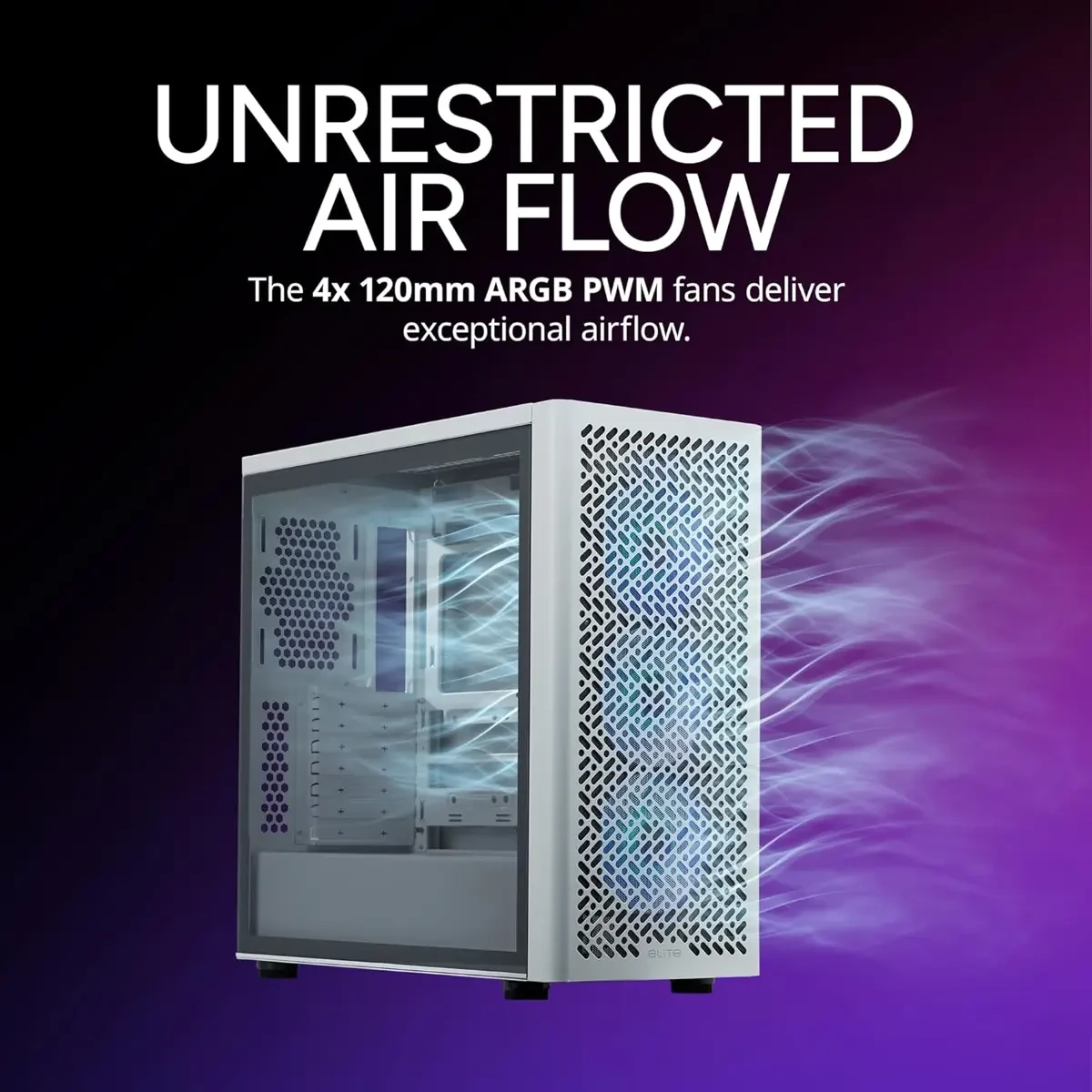 Cooler Master Elite 502 ATX High Airflow Minimalist PC Case, 410mm GPU Max, 360mm AIO Max, Type C, Tempered Glass, Triple 120mm aRGB Fan, Intakes Grill (White) is designed for buyers who want dependable performance with a clean upgrade path.