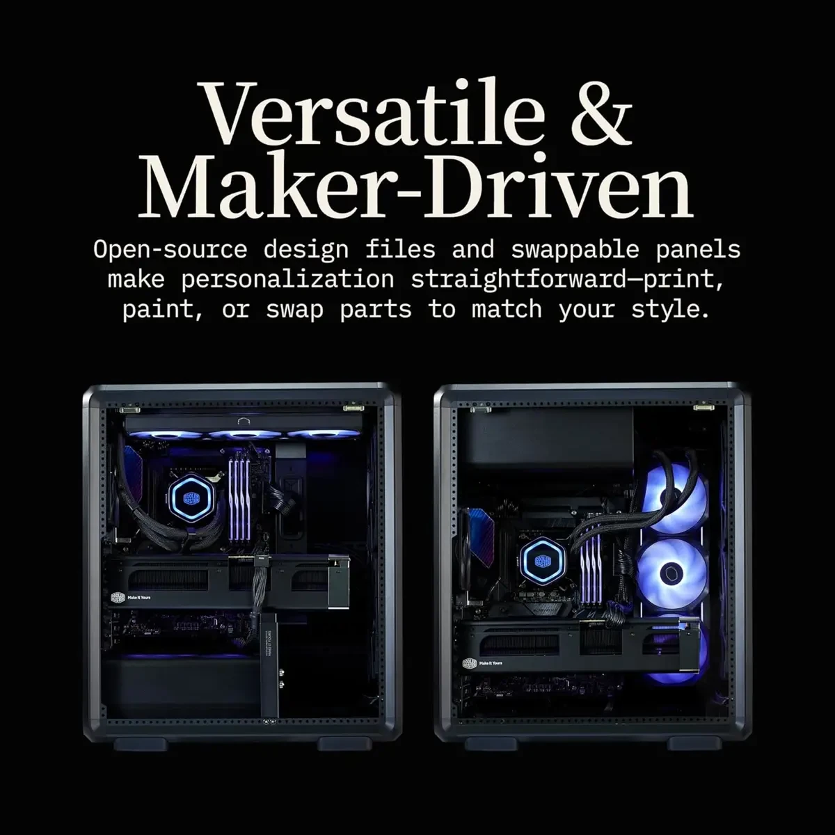 – The MasterFrame Series is our flagship showcase of Cooler Master’s FreeForm 2.0 design platform. This cases feature precision-milled aluminum exo-structures let you choose between open-bench, wall-mount, or showcase build modes—no special tools required. Download the open-source CAD files, print your own parts, swap in artisan side panels, and push performance with extreme cooling headroom. Your build, your rules.
