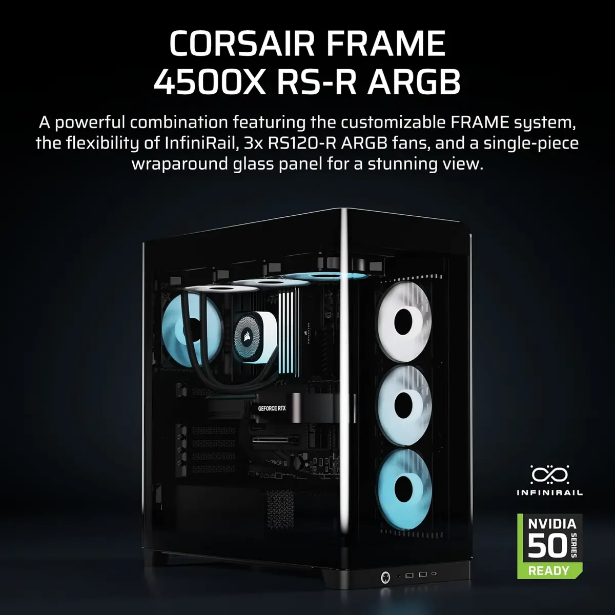 Corsair Frame 4500X RS-R ARGB Panoramic Glass Mid-Tower PC Case – InfiniRail Mounting System, Fits Dual 360mm Radiators, GPU Anti-Sag, 3x RS120R Fans Included – Black is designed for buyers who want dependable performance with a clean upgrade path.