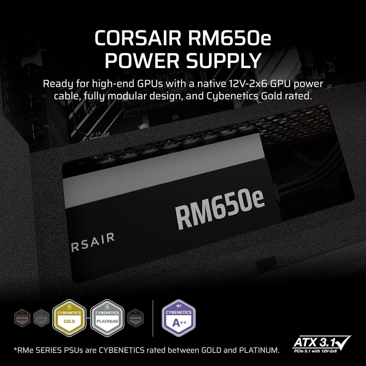 Corsair RM650e Fully Modular Low-Noise ATX Power Supply with 12V-2×6 Cable – ATX 3.1 & PCIe 5.1 Compliant, Cybenetics Gold Efficiency, 105°C-Rated Capacitors, Modern Standby Mode – Black is designed for buyers who want dependable performance with a clean upgrade path.