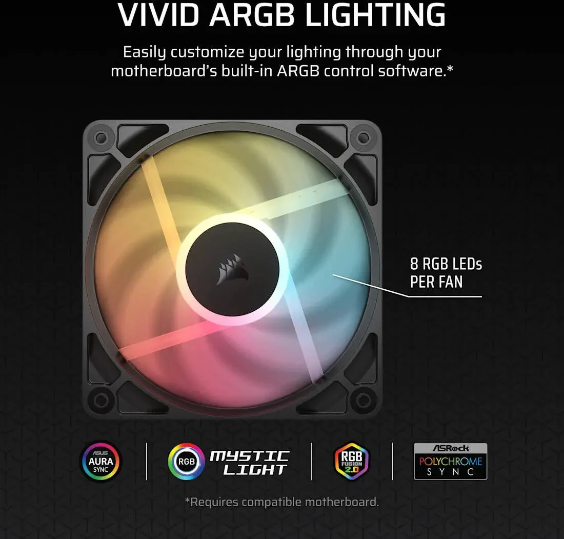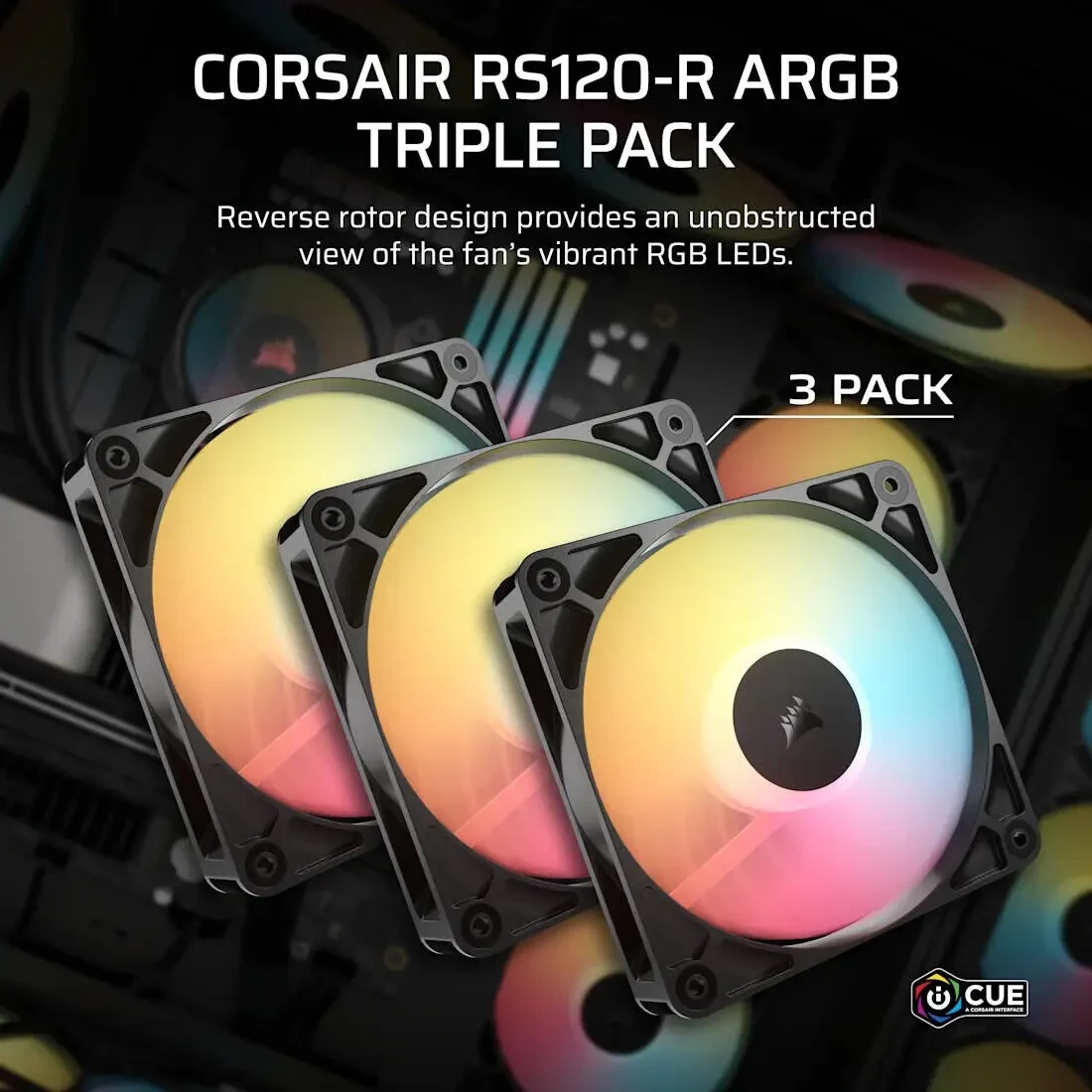 Corsair RS120-R ARGB 120mm PWM Reverse Fans, Daisy-Chain Connection, Low-Noise, Magnetic Dome Bearing – Triple Pack (Black) is designed for buyers who want dependable performance with a clean upgrade path.