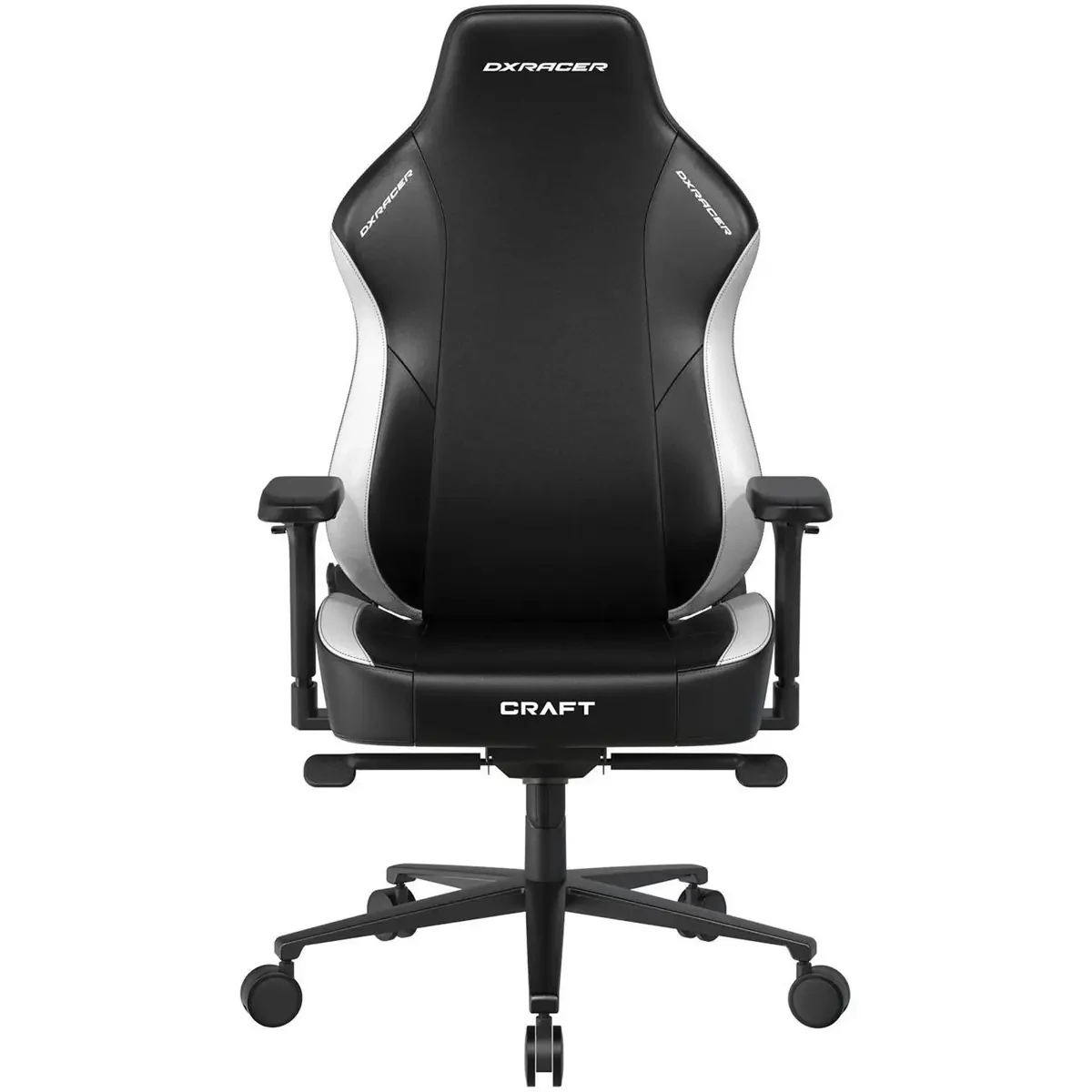 DXRacer Craft Series Gaming Chair, 2D Integrated Lumbar Support, 4D Armrests, Class 4 Hydraulics, Back Recline Support, Extra Large Size, Black/White