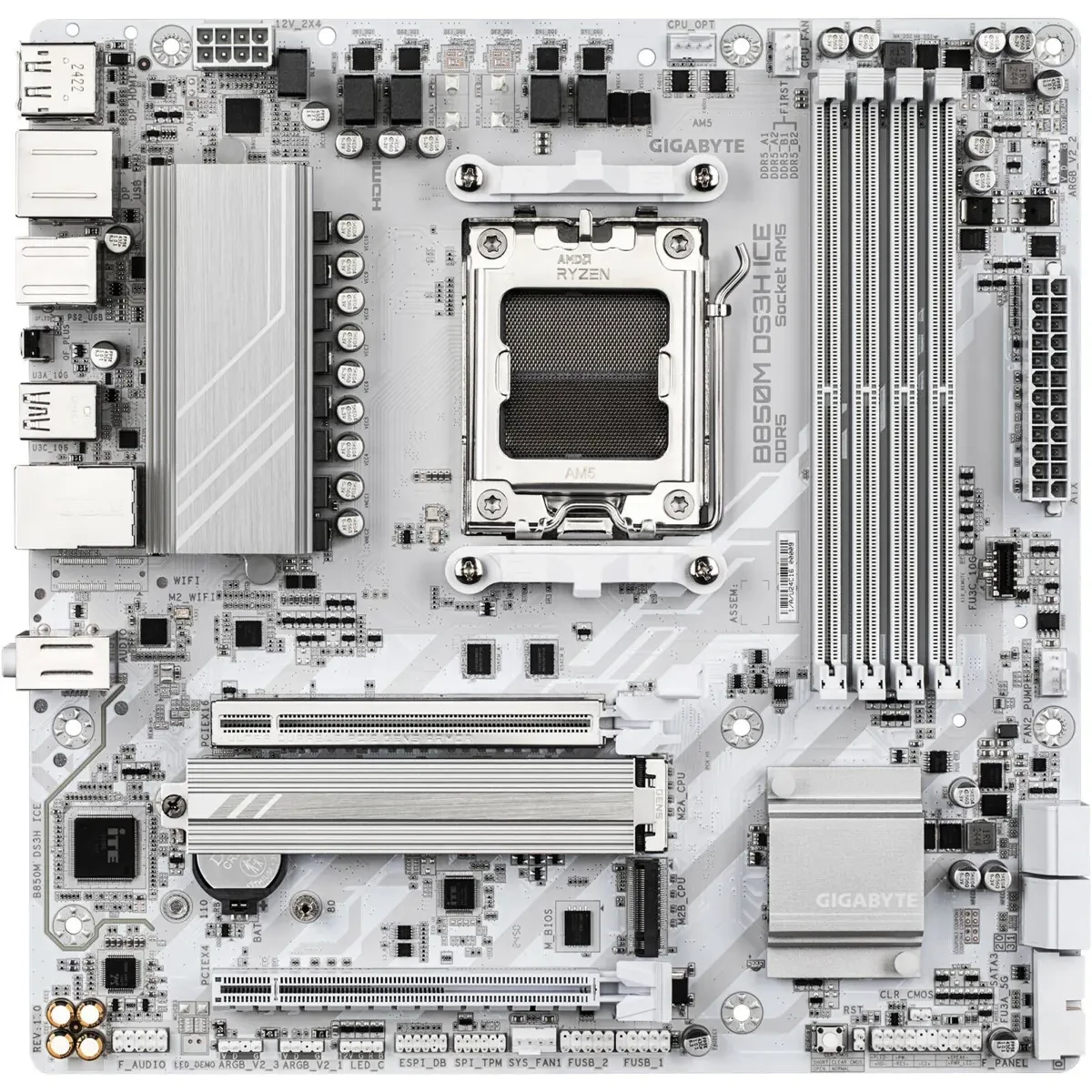 Gigabyte B850M DS3H Ice AM5 M-ATX Motherboard, AMD B850 Chipset, 4x DDR5 DIMM Slots, Up to 256GB Max Memory, 1x PCIe 5.0 x16, 2x M.2 Slots, White is designed for buyers who want dependable performance with a clean upgrade path.
