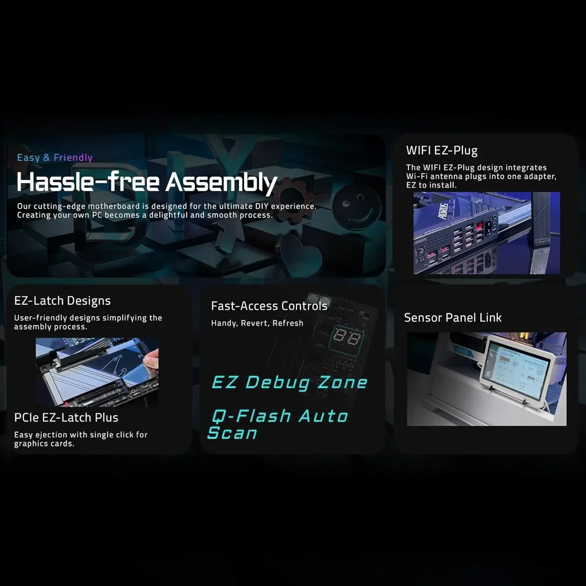 – EZ-Latch Plus:PCIe and M.2 slots with Quick Release & Screwless Design