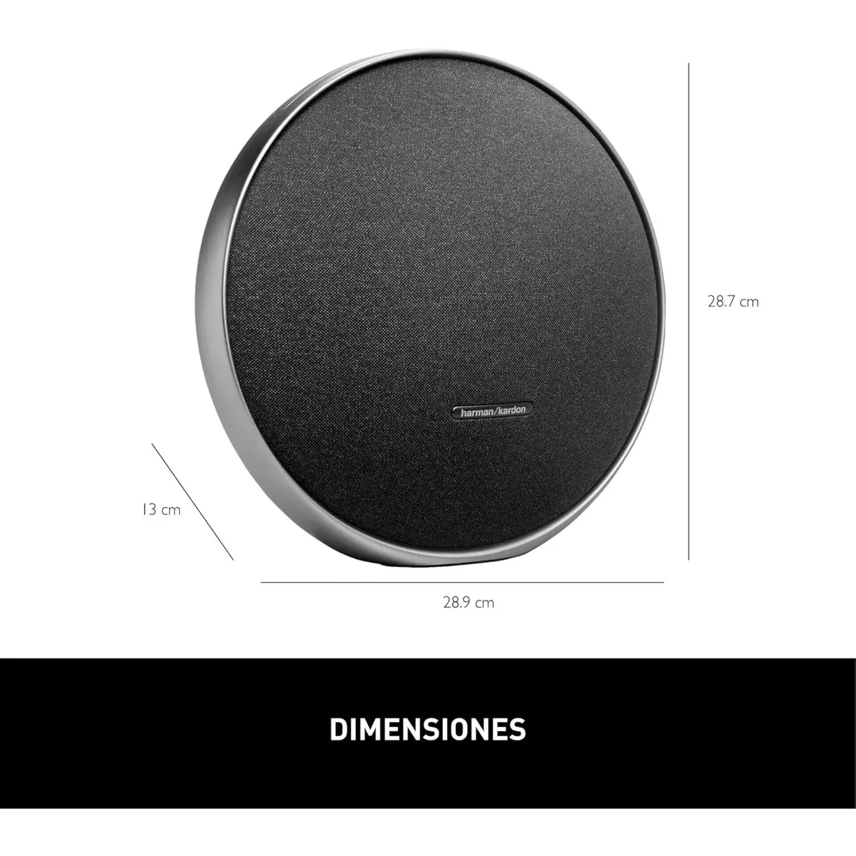 – With its rechargeable built-in battery, you can enjoy the Harman Kardon Onyx Studio 9 anywhere in your home, and easily transport it from one room to another for up to 8 hours of playtime