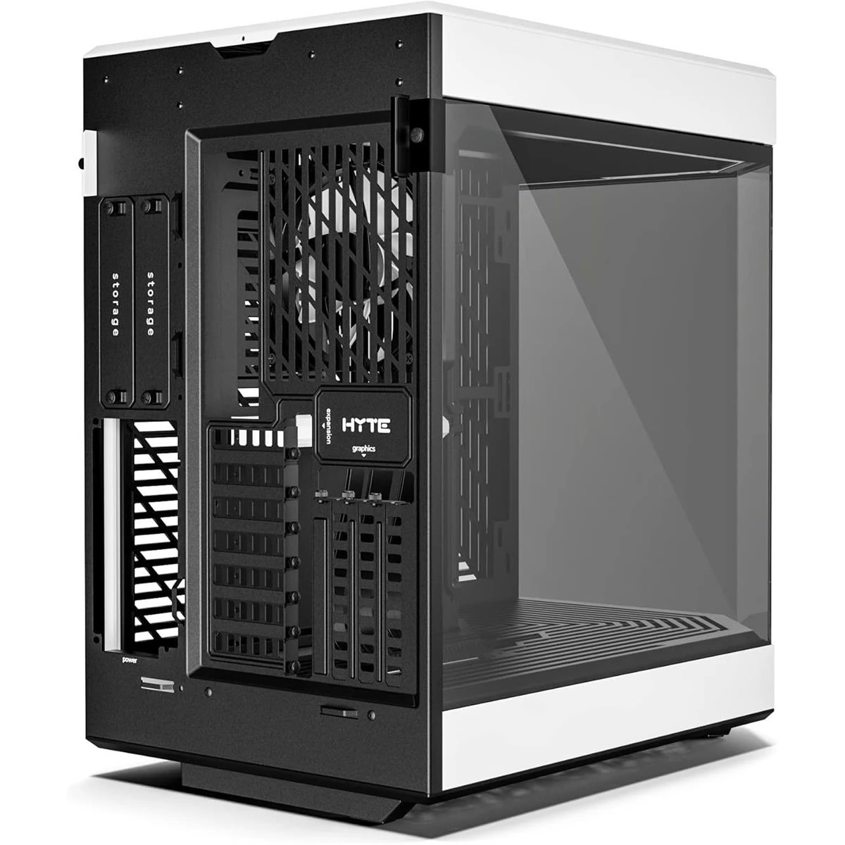 – See your components the way they were meant to be seen. The HYTE Y60 features a 3-piece panoramic tempered glass design for the ultimate photo and display potential and a protective riser cable canopy that integrates beautifully into the case, allowing for half-height PCI-E cards behind the throne of the vertical graphics card.