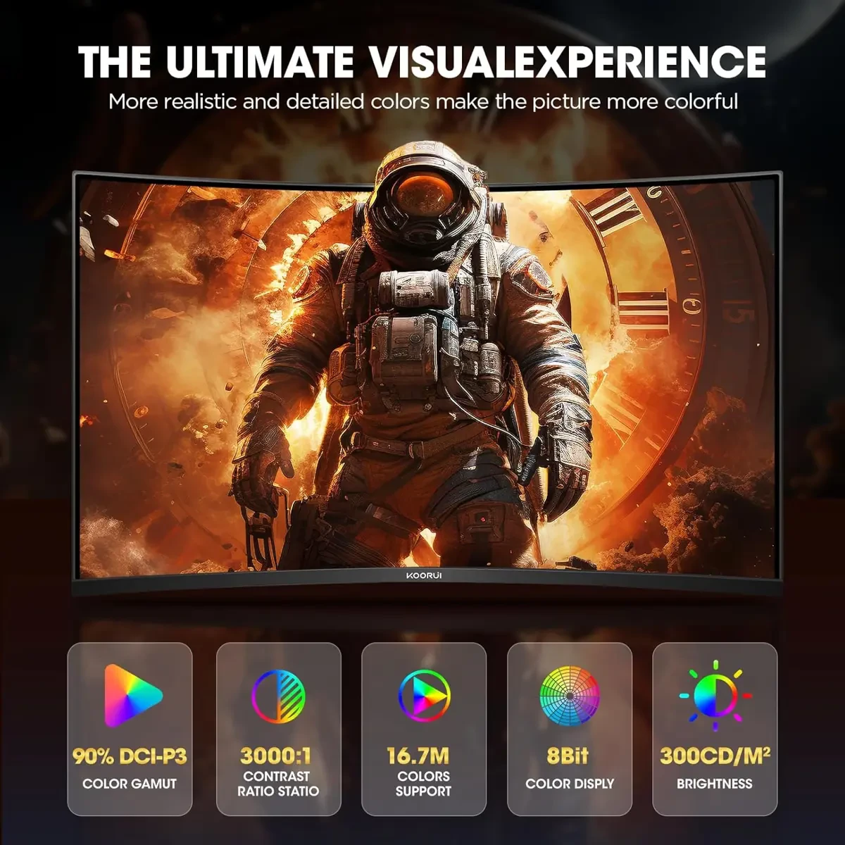 – KOORUI 32 inch ultrawide curved gaming monitor (2560×1440 resolution) with a 1500R curvature design delivers a truly immersive experience. Whether you’re gaming intensely or enjoying your favorite movies, this monitor offers realistic visuals and comfortable viewing.