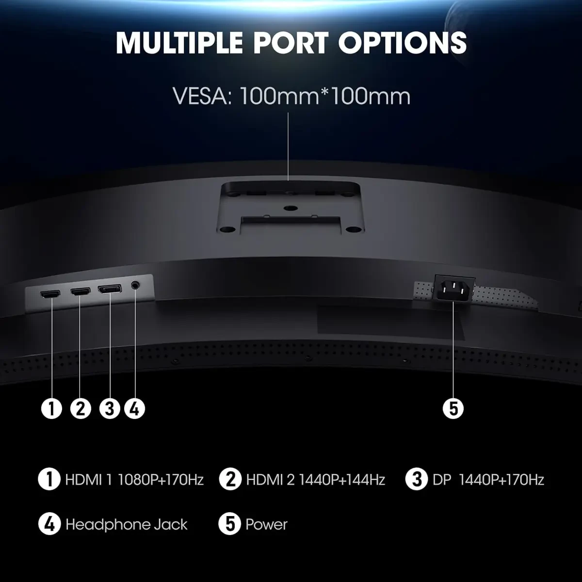– Enjoy a seamless gaming experience with up to 170Hz refresh rate and 144Hz refresh rate, along with a 1ms response time. This 32 inch curved monitor features Adaptive Sync technology to eliminate screen tearing and stuttering, delivering fluid performance perfect for FPS, racing and fast-paced eSports.