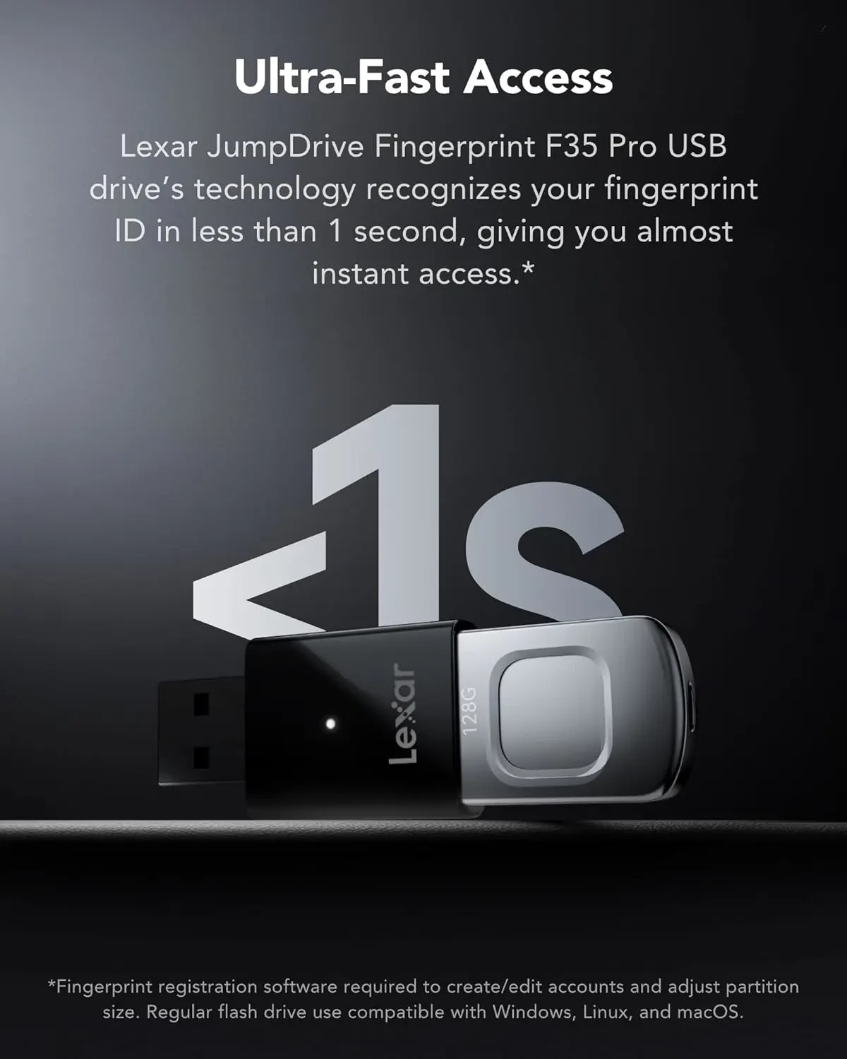 Lexar 128GB JumpDrive Fingerprint F35 PRO USB 3.2 Gen 1 Flash Drive, Up to 400/300 MB/s Read/Write, Storage Expansion and Backup, 256-bit AES & Fingerprint Encryption is designed for buyers who want dependable performance with a clean upgrade path.