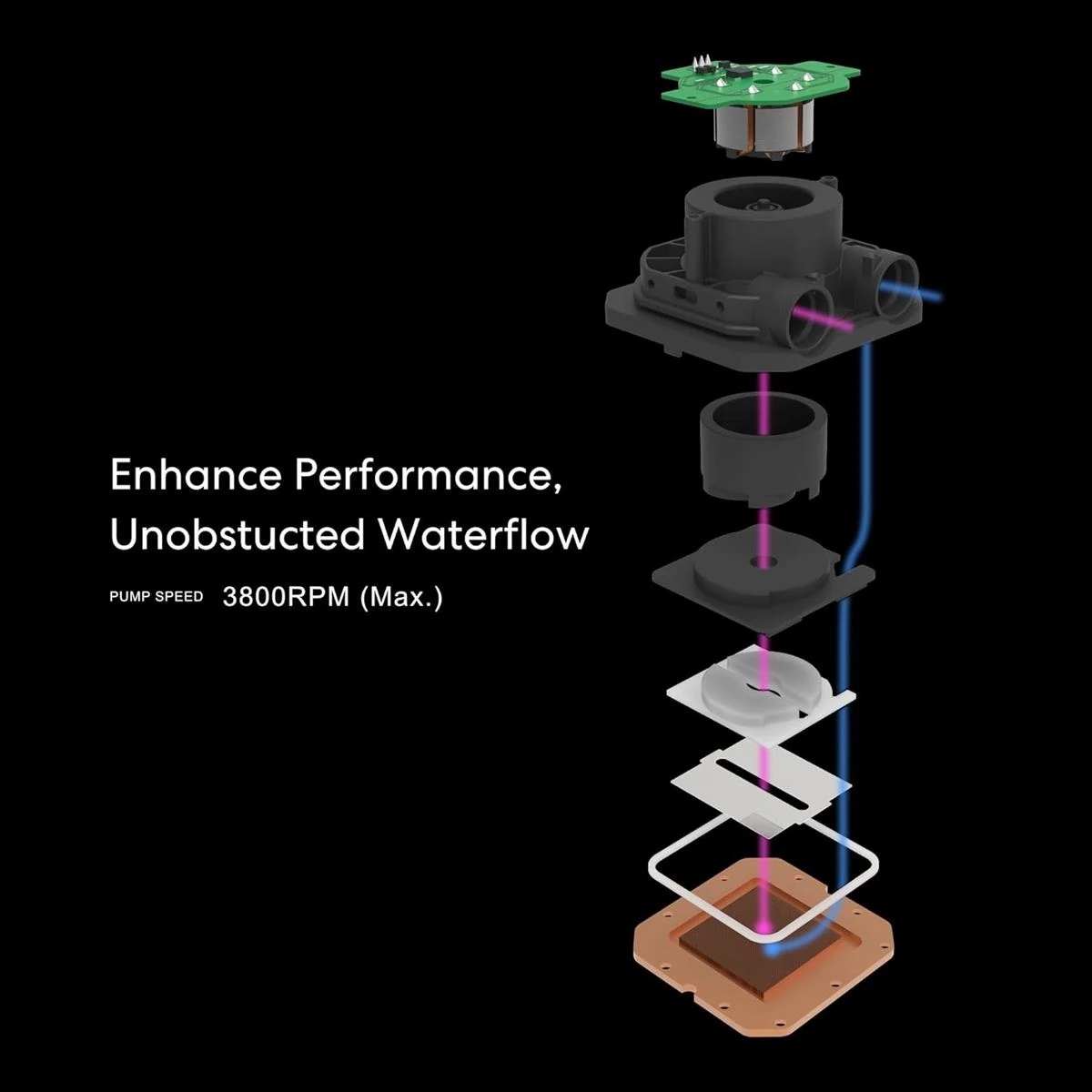 – Shifted AIO tubes for a near-tubeless aesthetic.