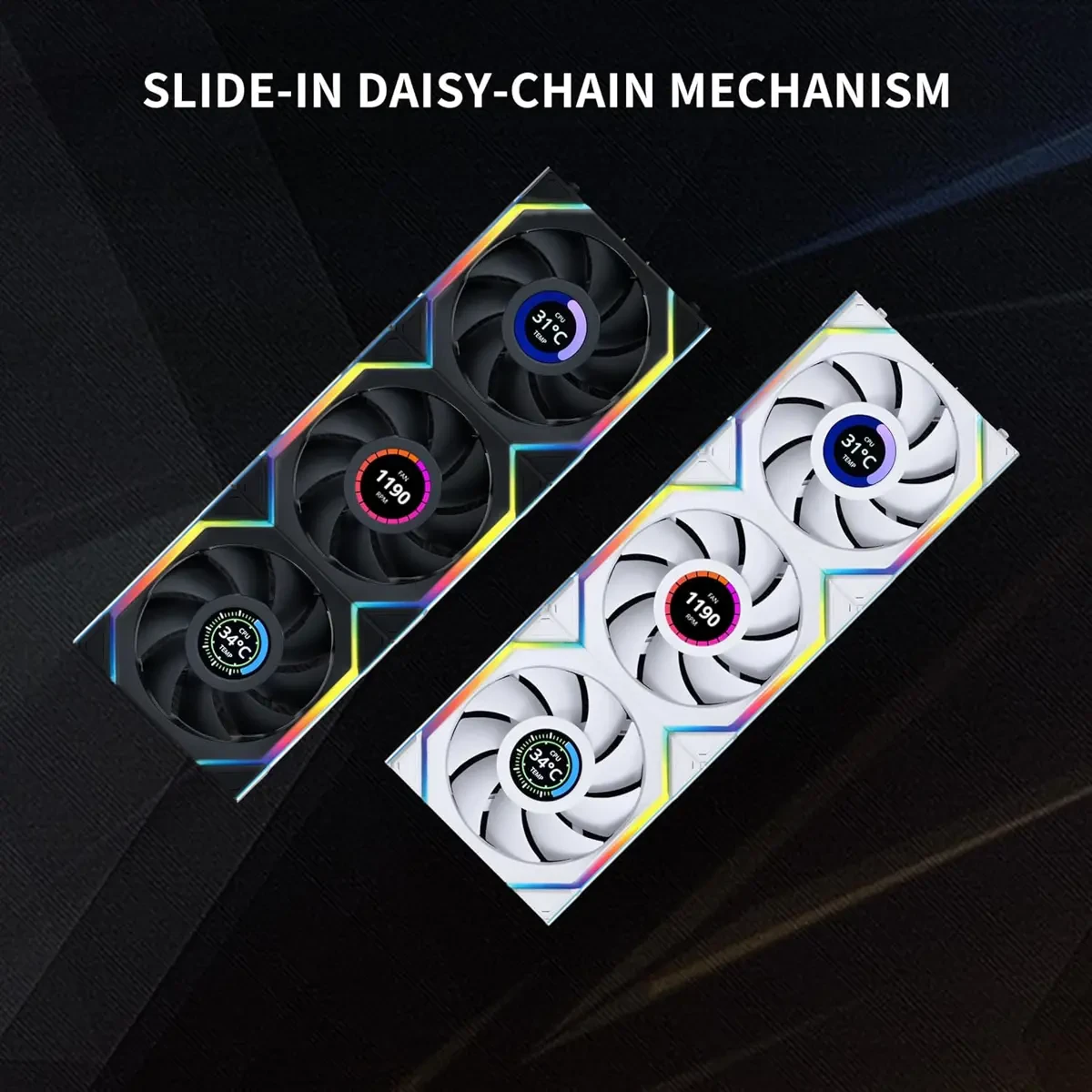 UNIFAN interlocking system for ease of cable management. As well as, the slide-in daisy-chaining mechanism for easy configuration and holding the fans securely in place. Fan Size: 120×124.5x28mm. Please check case compatibility before purchase.