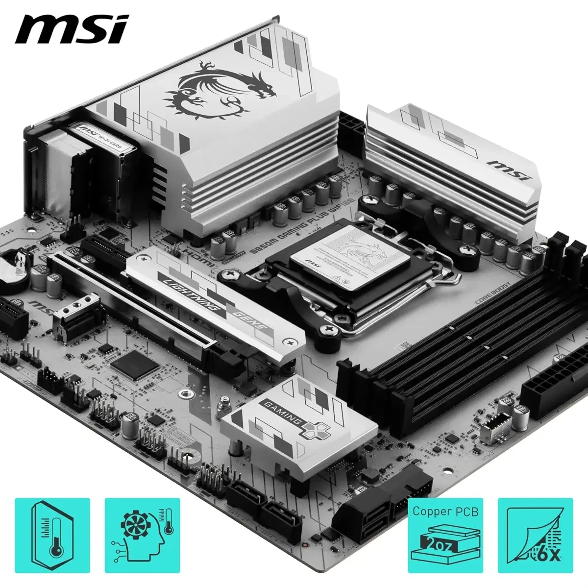 – The B850M GAMING PLUS WIFI6E is a gaming oriented Micro-ATX motherboard that is constructed with the latest AMD B850 chipset which supports AMD Ryzen 9000 / 8000 / 7000 series desktop processors, featuring PCIe 5.0 M.2 solution, 2.5G LAN, Wi-Fi 6E and DDR5 that balances both value and premium hardware.