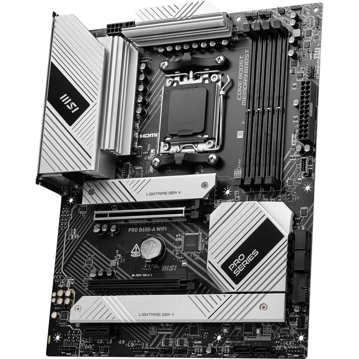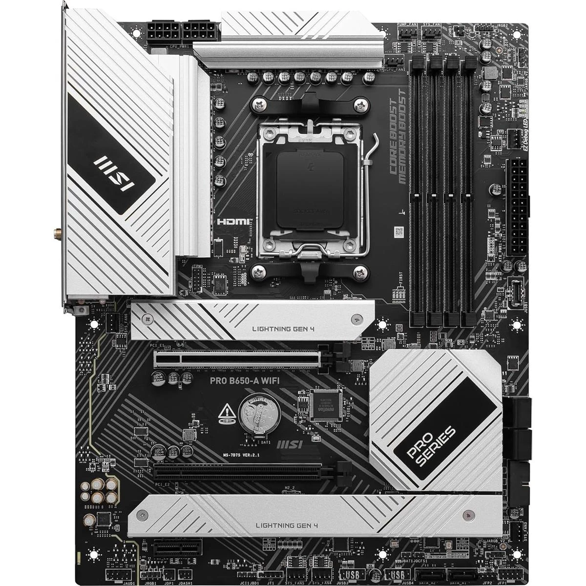 MSI Pro B650-A WiFi ProSeries Motherboard (AMD Ryzen 9000/8000/7000 Series Processors, AMD AM5, ATX, DDR5, PCIe 4.0, M.2, SATA 6Gb/s, USB 3.2 Gen 2, HDMI/DP, Wi-Fi 6E) is designed for buyers who want dependable performance with a clean upgrade path.