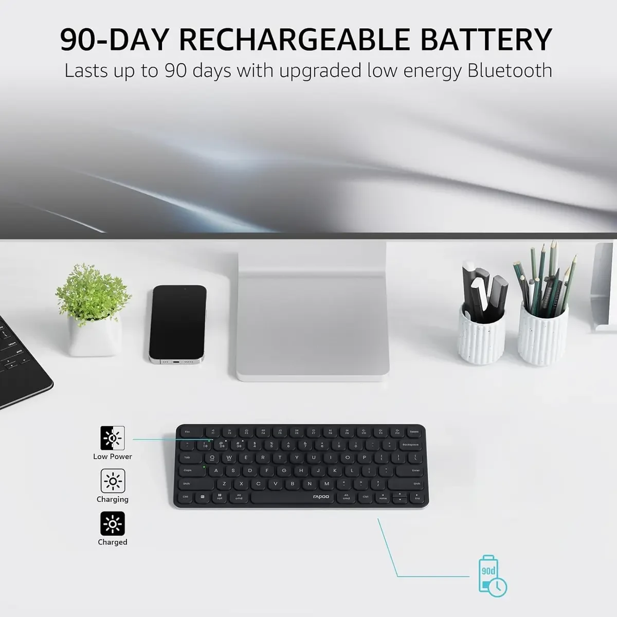 Rapoo E9050L Bluetooth Wireless Multi-Device Keyboard (4 Devices), Rechargeable, Led Indicators, Ultra-Thin, Ergonomic, Compatible with Windows, iOS, Android, Tab, Smartphones – Black is designed for buyers who want dependable performance with a clean upgrade path.