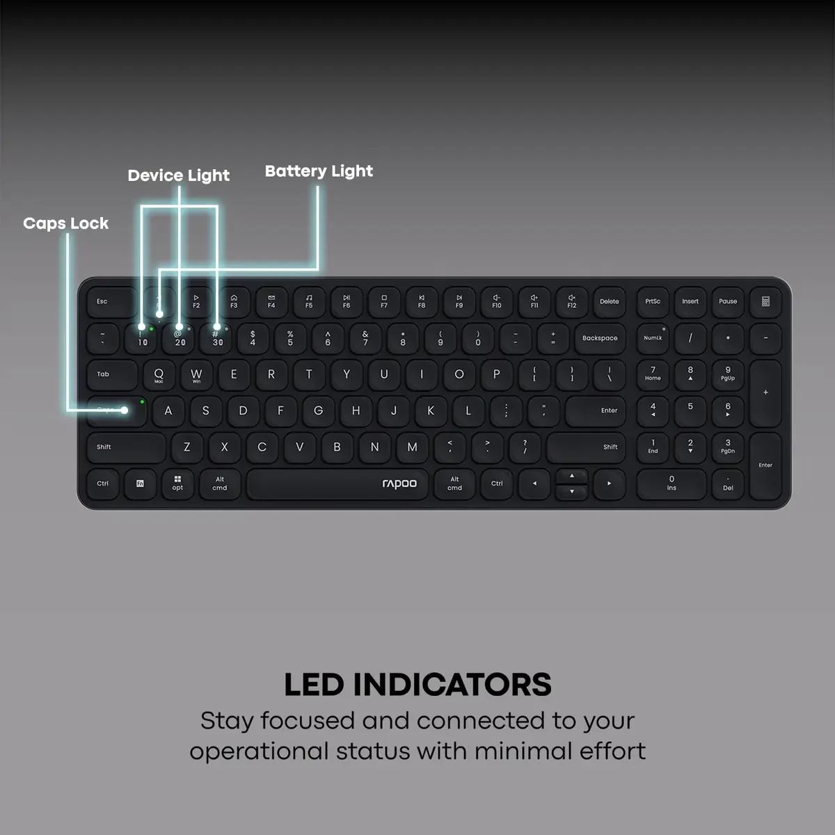 Rapoo E9350L Bluetooth Wireless Multi-Device Keyboard (4 Devices), Numpad, Led Indicators, Ultra-Thin, Ergonomic, Compatible with Windows, iOS, Android, Tablets, Smartphones – Black is designed for buyers who want dependable performance with a clean upgrade path.