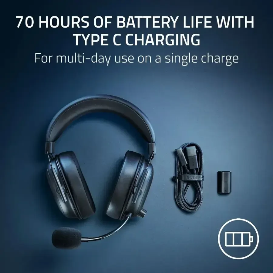You're viewing: Razer BlackShark V2 HyperSpeed Wireless Gaming Headset: 280g Lightweight, THX Spatial Audio, Bendable Mic, 50mm Drivers, 2.4GHz, Bluetooth or USB, 70 Hr Battery w/USB Type C Charging – White (Brown Razer Box) 20,999