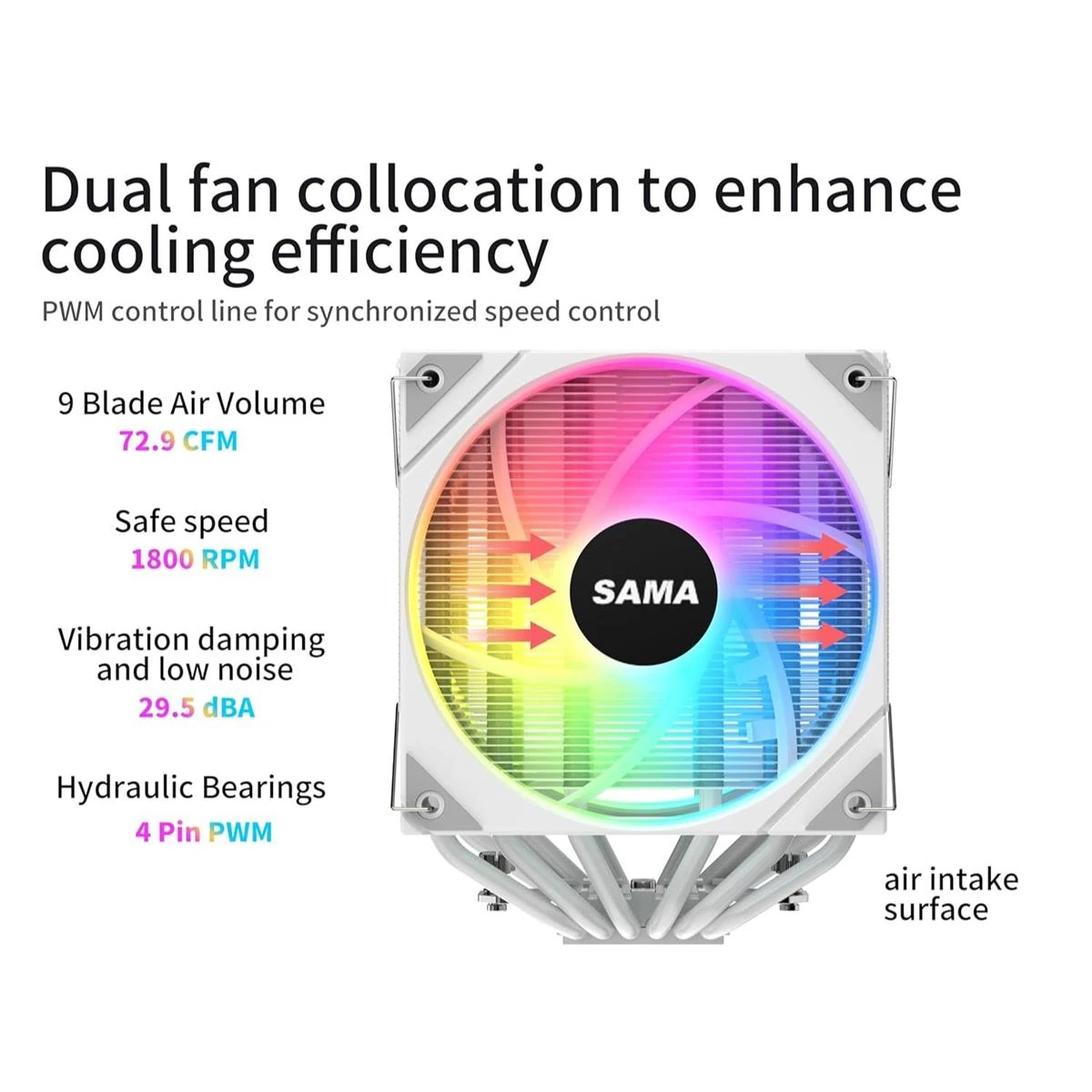 Sama 6PDW ARGB White CPU Air Cooler 120mm Cooling Fan Addressable RGB Aluminum PC CPU Heatsink for Intel and AMD is designed for buyers who want dependable performance with a clean upgrade path.
