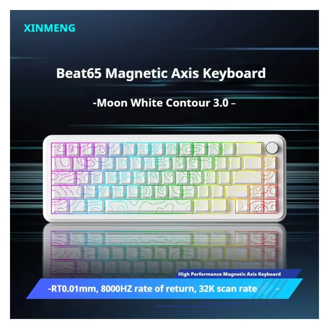 Sama Xinmeng Beat65 Rapid Trigger RGB Gaming Keyboard, Adjustable Actuation Hall Effect Magnetic Switch 65% Wired Mechanical Keyboard, 8K Hz Polling Rate – Moon White Contour 3.0