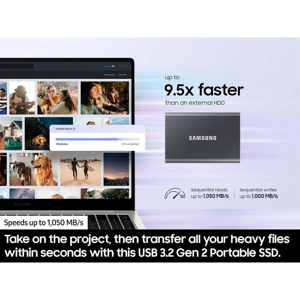 You're viewing: Samsung T7 4TB Portable SSD, External Solid State Drive, Speeds Up to 1,050MB/s, USB 3.2 Gen 2, Reliable Storage for Gaming, Students, Professionals, Gray 104,999
