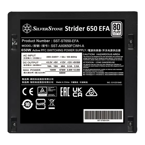 SilverStone Strider 650 EFA 80 PLUS 230V EU 650W ATX (PS2) Power Supply – Black is built for smooth day-to-day use, reliable performance, and easy upgrades where applicable.