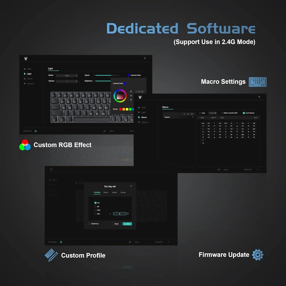 Tezarre TK63 Pro Wireless Keyboard Bluetooth/2.4G/USB Wired 60% Mechanical Gaming Keyboard RGB Backlit PBT Pudding Keycaps Hot-Swappable, Black is built for smooth day-to-day use, reliable performance, and easy upgrades where applicable.