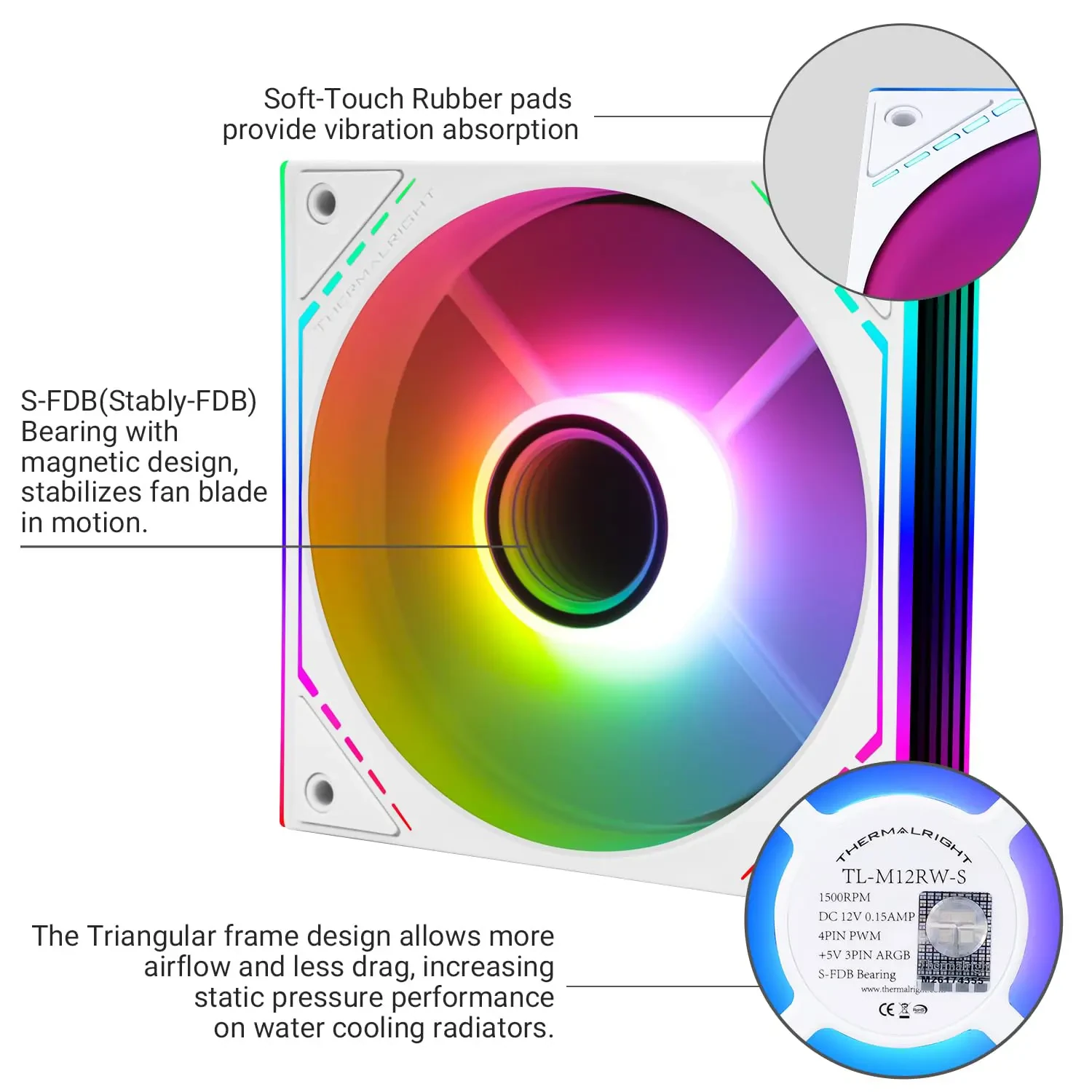 Thermalright TL-M12RW-S Reverse White CPU ARGB Fan 120mm Case Cooler Fan ARGB, 4pin PWM Connector Silent Computer Fan with S-FDB Bearing, Desktop Cooling Inverted Fan has Side ARGB Mirror Light Effect is designed for buyers who want dependable performance with a clean upgrade path.