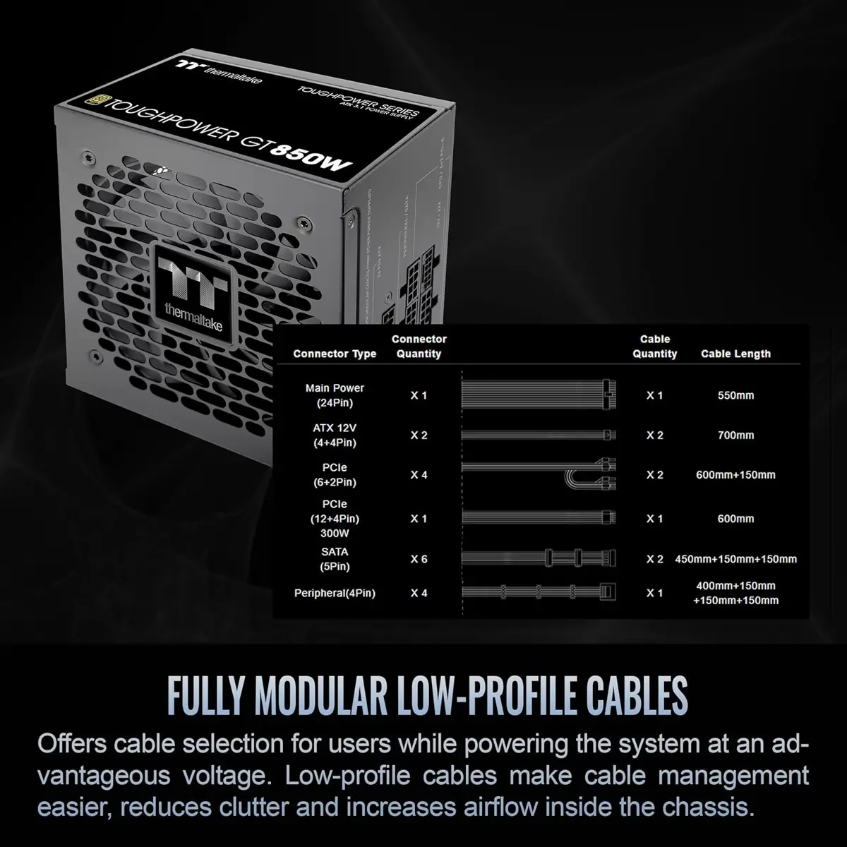 Thermaltake ToughPower GT 850W ATX 3.1 Standard Power Supply – 80 Plus Gold Efficiency, Fully Modular, Smart Zero Fan, Native 300W PCIe 5.1 Connector is designed for buyers who want dependable performance with a clean upgrade path.