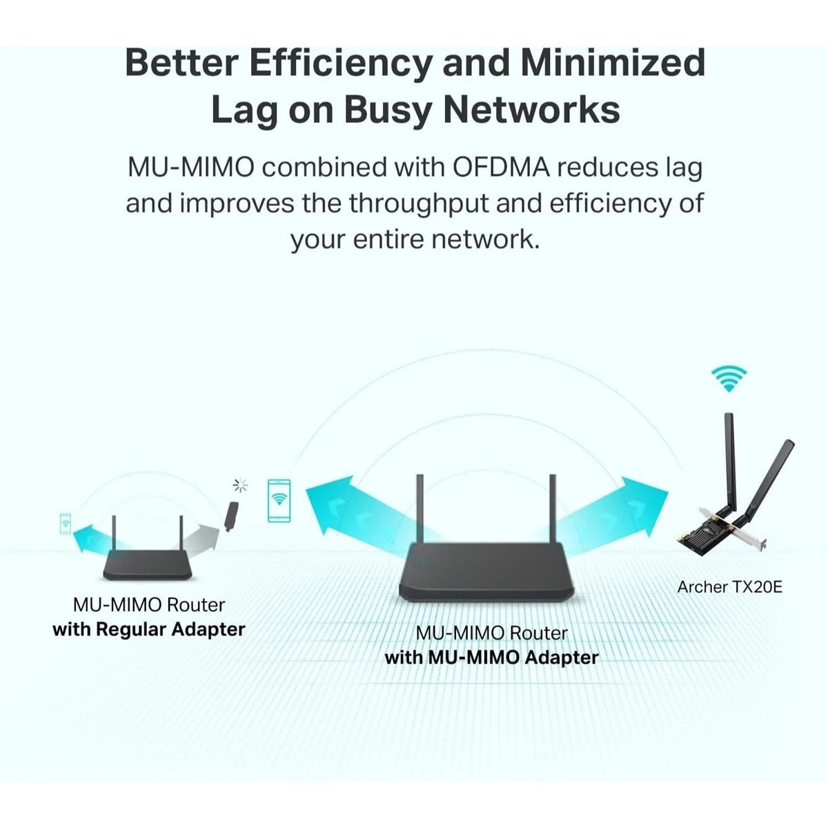 – Designed to excel in even the busiest of networks, Archer TX20E features Wi-Fi 6 technology to give you fast speed, low latency, and uninterrupted connectivity for your PC.